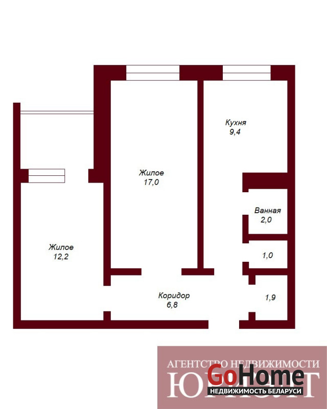 Общая площадь квартиры: 55 кв.м., жилая - 29 кв.м., кухня 9,4 кв.м.