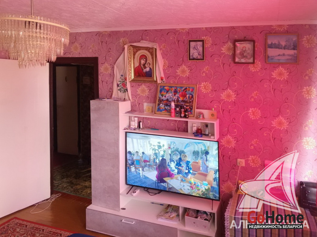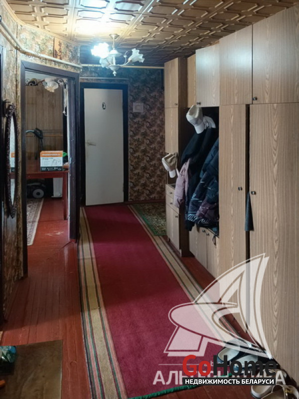 4-комнатная квартира, аг. Ореховский ул. Ленина, 1989 г.п., 2 / 2 панель, 75,4 / 49,1 / 7,6, санузел раздельный, подвал, лоджия застеклена, один стеклопакет, деревянные межкомнатные двери, входная дверь деревянная, потолки - побелка и натяжные (в спальне), полы - доска крашеная, стены оклеены обоями, чугунная ванна. В квартире требуется ремонт. Квартира расположена на две стороны. Лот - 251364