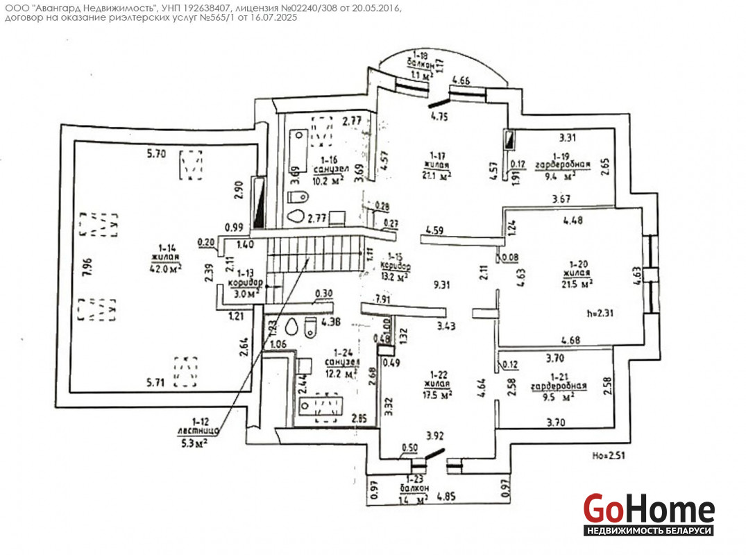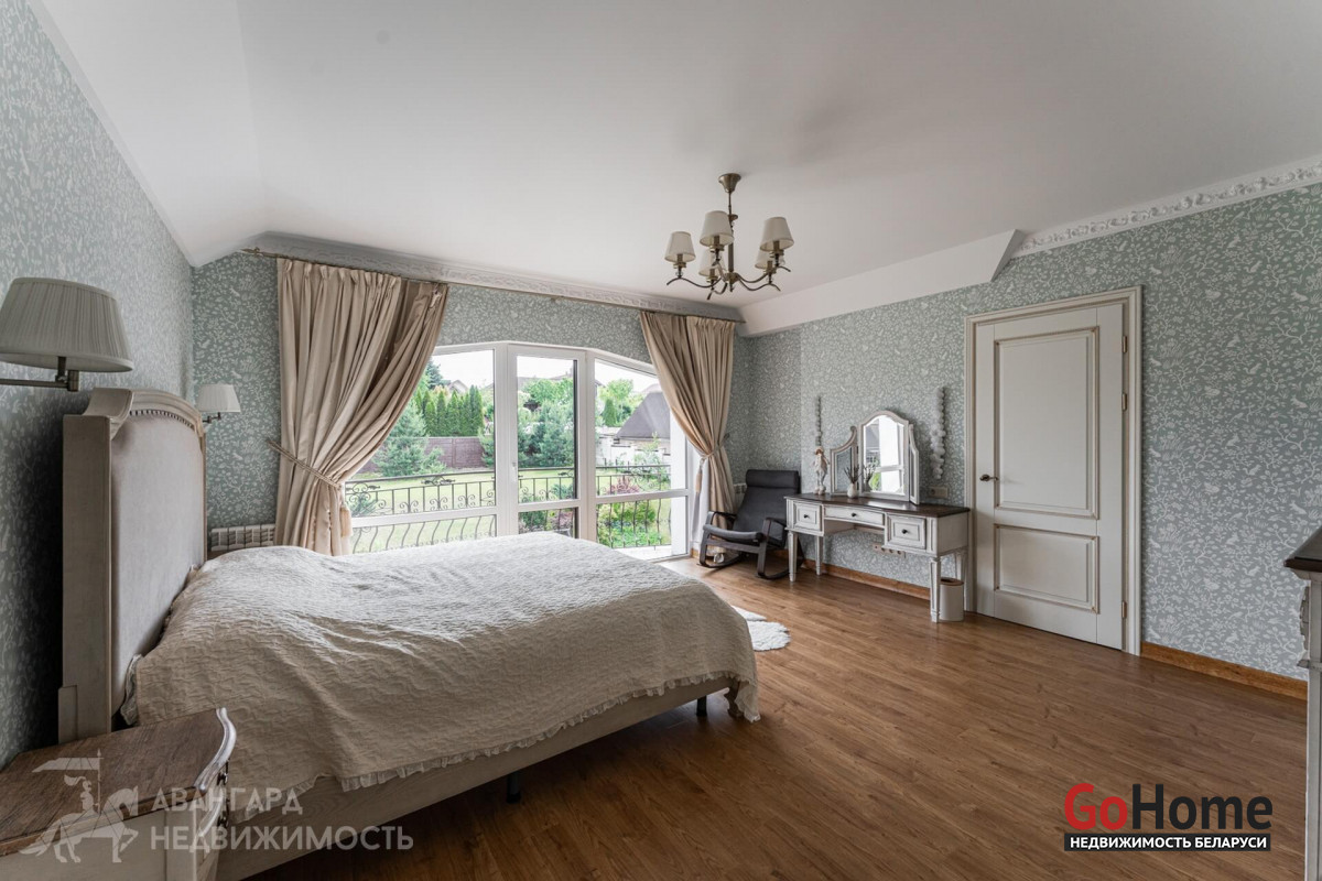2 этаж: главная спальня с балконом, гардеробом и отдельным санузлом, три жилых комнаты (детская, кабинет и комната отдыха), санузел, гардероб.