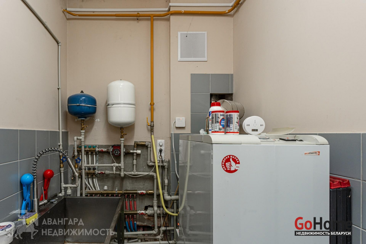 Коммуникации: газовое отопление (на первом этаже теплый водяной пол), вода скважина, канализация местная.