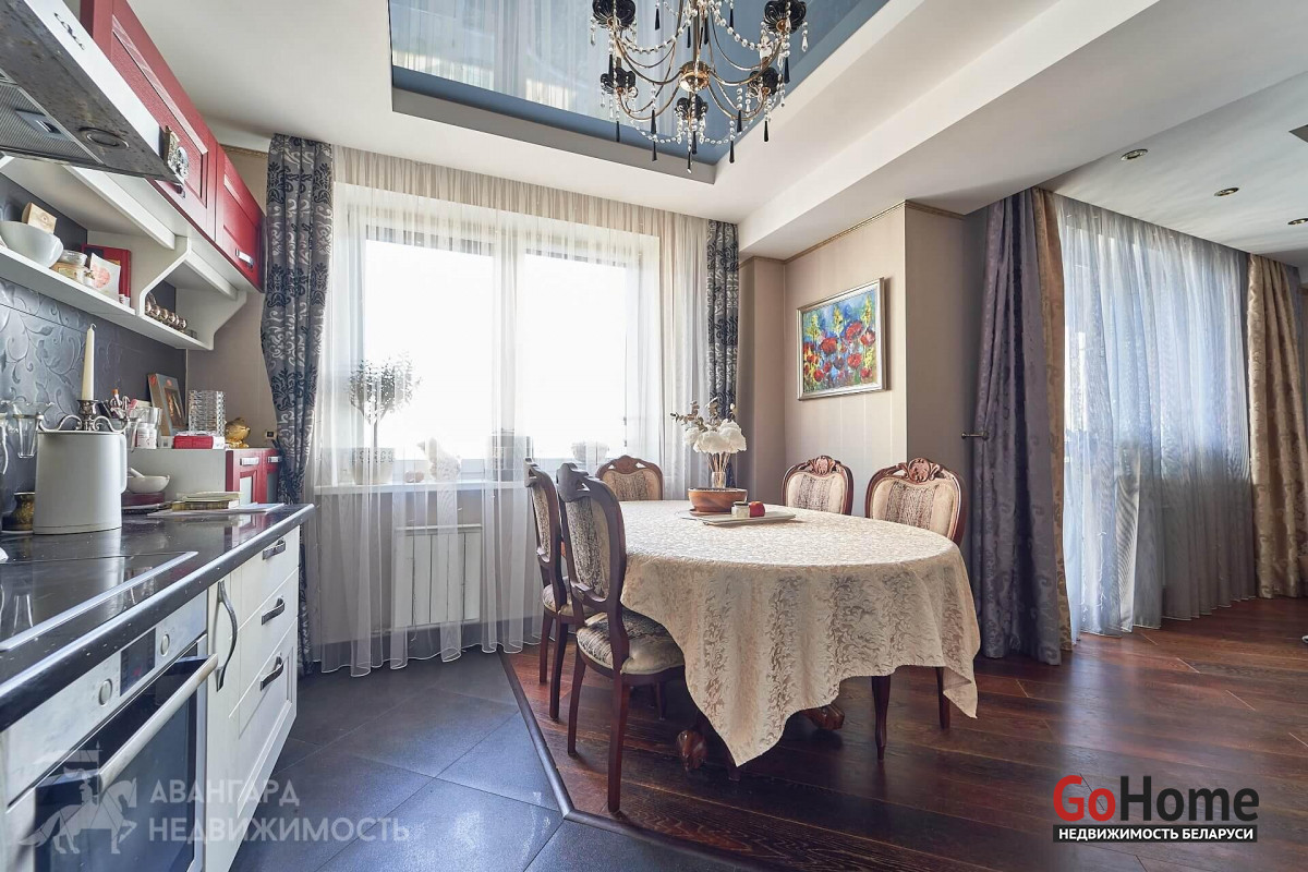 Квартира с дизайнерским ремонтом в классическом стиле, полностью оснащенная бытовой техникой и мебелью для большой семьи. Благодаря многочисленным источникам освещения здесь всегда уютно и светло. Таким образом эта квартира — отличный вариант для тех, кто ценит комфорт, безопасность и удобство местоположения.