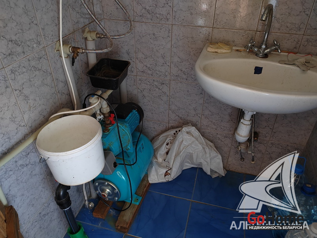 Коммуникации: отопление - печь, газ - централизованный (по улице, взносы не оплачены), водоснабжение - скважина, гидрофор и водонапорная башня, электричество - централизованное..