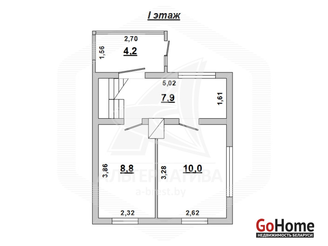 Садовый домик в Брестском р-не. 1980 г.п. 1 этаж, мансарда. Общ. - 47,7 кв.м. 3 комнаты.