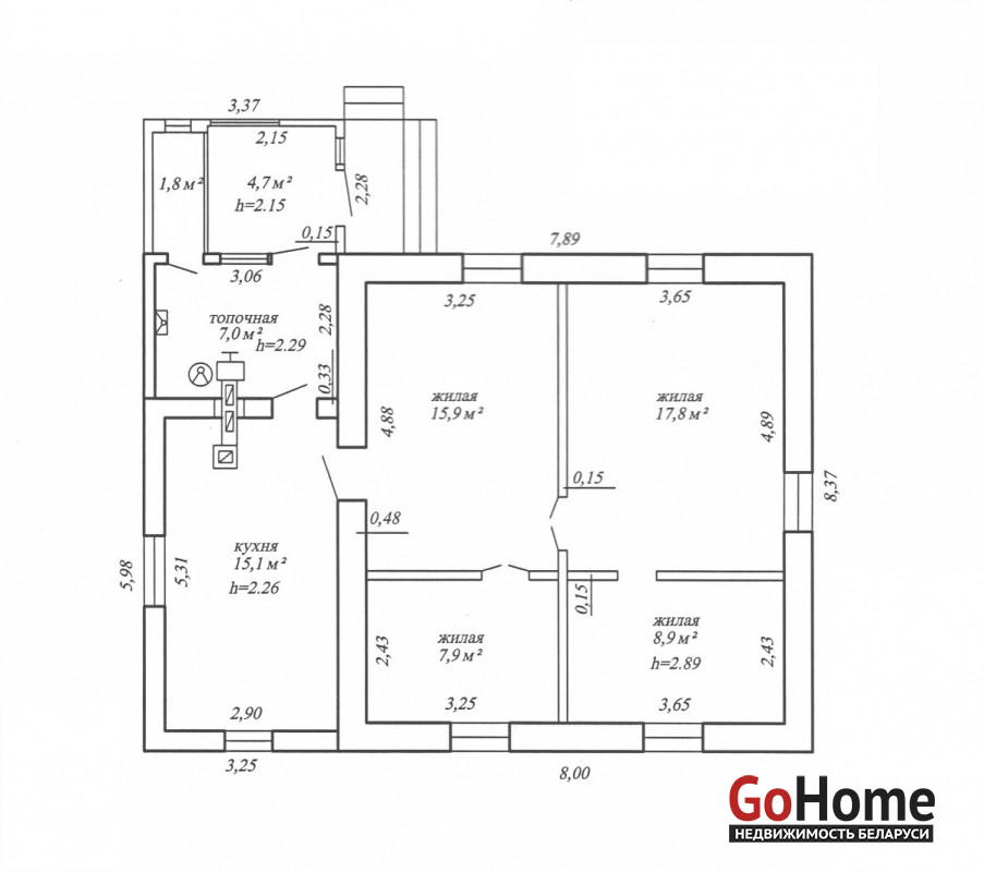 - отопление от котла на газу: установлен действующий одноконтурный котел;
