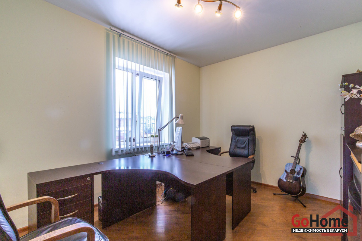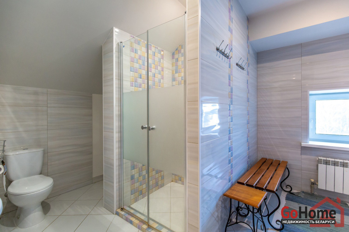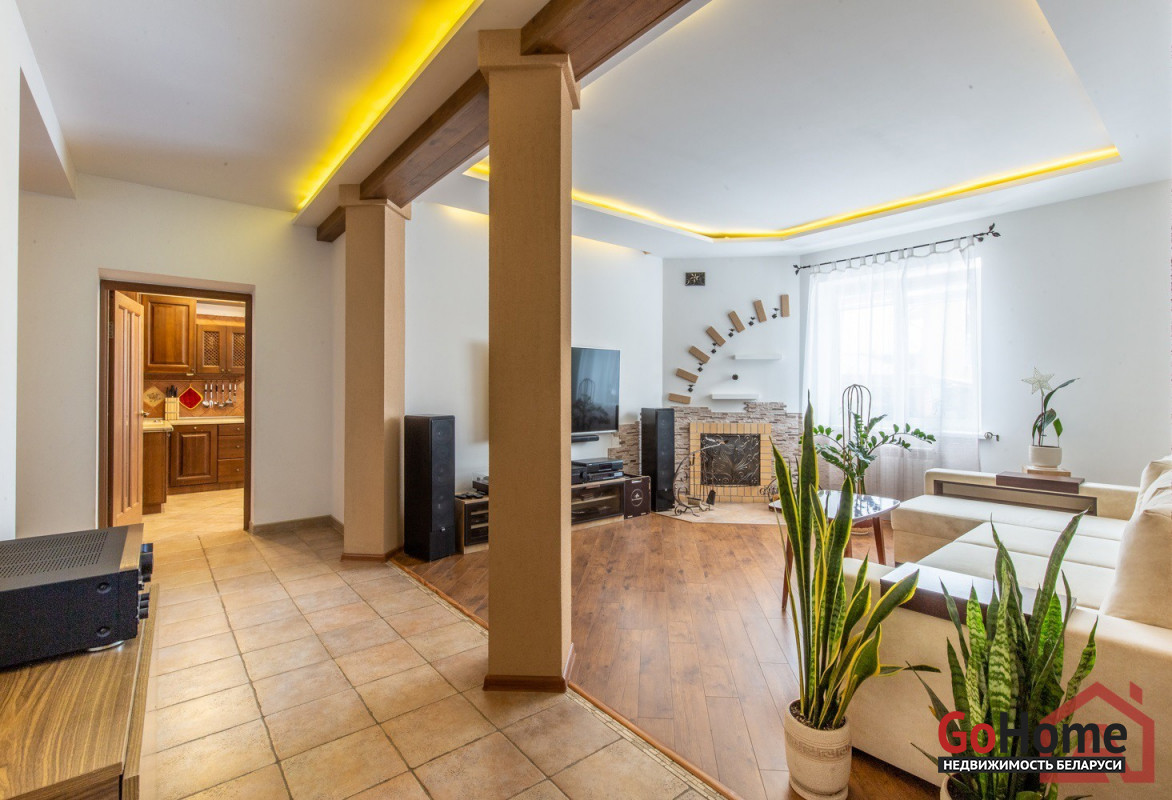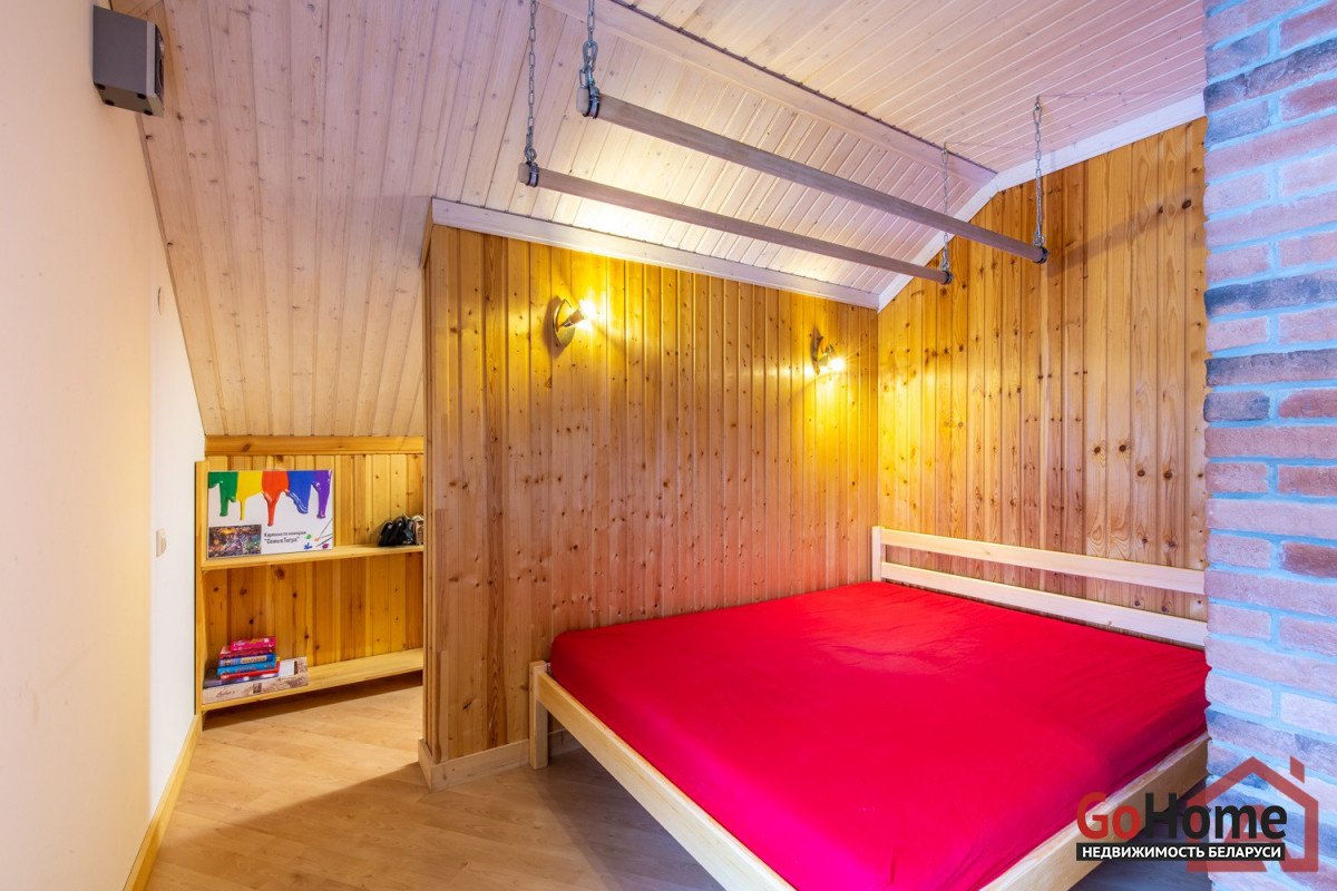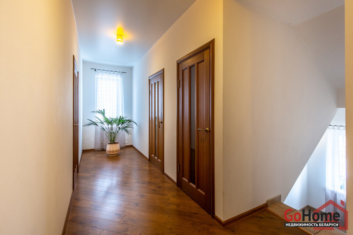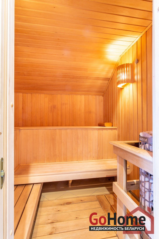 В доме 5 комнат, из них 3 спальни, гостиная с камином, кабинет, просторная кухня. Три этажа, на каждом просторный санузел. Третий - мансардный этаж жилой, есть сауна. Сауна оборудована печью “HARVIA”, отделка – липа.