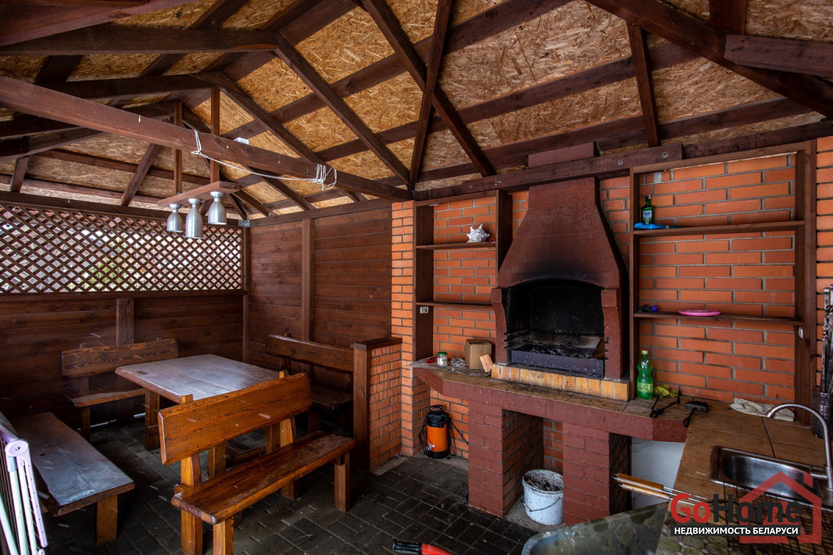 Дом расположен на участке 8 соток, есть гараж на 2 машины, навес на 2 машины, зона барбекю-беседка 3х6 с печью.