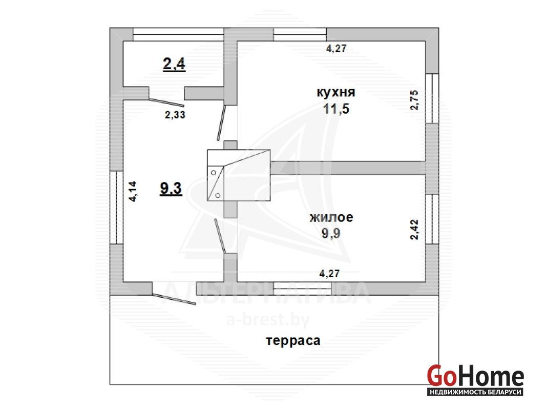 Коробка дачного дома жилого типа в Брестском р-не. 1980 г.п. Общ.СНБ - 33,1 кв.м, 1 комната.