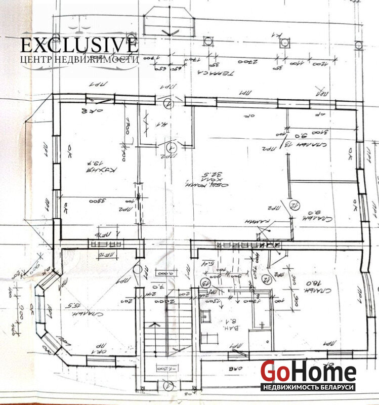 Общая площадь дома 227 м.кв., жилая 116,4 м.кв., кухня 19.м.кв. Удобная планировка, с 4 просторными жилыми комнатами и большой гостиной с выходом на террасу (площадь около 40 м.кв).