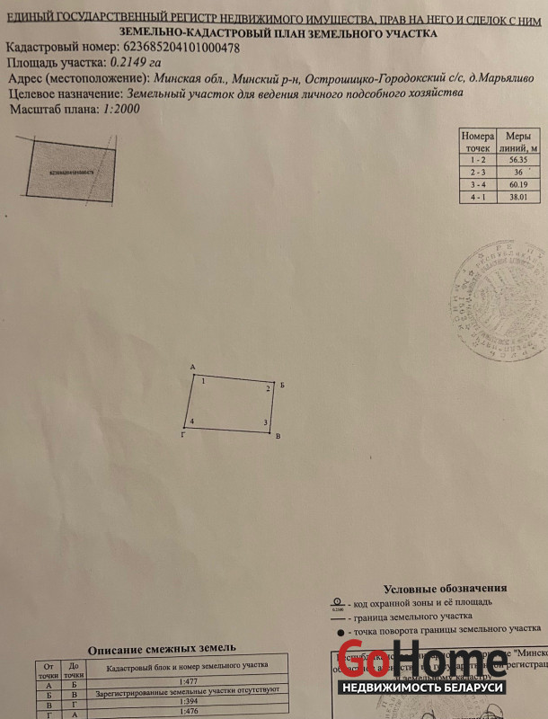 Продам земельный участок с кадастровым номером 623685204101000478. Координаты: 54.037743, 27.663186. Адрес объекта Минская обл., Минский р-н., Острошицко-Городокский с/с, д. Марьяливо. Участок находится рядом с домом по …