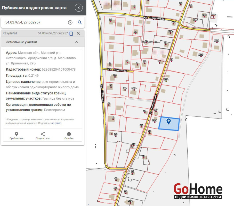 Продам земельный участок с кадастровым номером 623685204101000478. Координаты: 54.037743, 27.663186. Адрес объекта Минская обл., Минский р-н., Острошицко-Городокский с/с, д. Марьяливо. Участок находится рядом с домом по ул. Криничная, 29-А. Целевое назначение - для строительства и обслуживания одноквартирного жилого дома (на основании свидетельства о гос. регистрации от 25.03.2026г.). Участок правильной формы. Плюсы участка: Живописная природа, тихая деревня, при этом - 10-15 минут до Минска. Рядом жилые дома, развитая коттеджная застройка. Звоните или пишите.