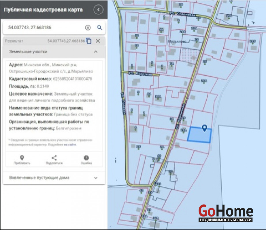 Продам земельный участок с кадастровым номером 623685204101000478. Координаты: 54.037743, 27.663186. Адрес объекта Минская обл., Минский р-н., Острошицко-Городокский с/с, д. Марьяливо. Участок находится рядом с домом по ул. Криничная, 29-А. Назначение - Земельный участок для ведения личного подсобного хозяйства. Участок правильной формы. Плюсы участка: Возможность смены целевого назначения. Живописная природа, тихая деревня, при этом - 10-15 минут до Минска. Рядом жилые дома, развитая коттеджная застройка.  Звоните или пишите.