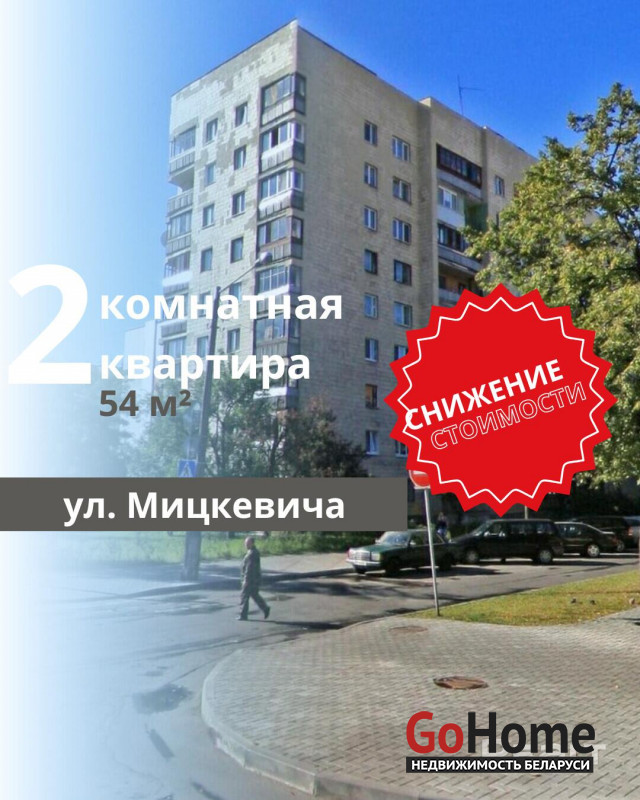 Продается 2-комнатная квартира в центре города Брест, расположенная на улице Мицкевича (пересечение с Кирова). Квартира 1977 года постройки, находится на первом этаже девятиэтажного кирпичного дома. Общая площадь составляет 54 кв.м.