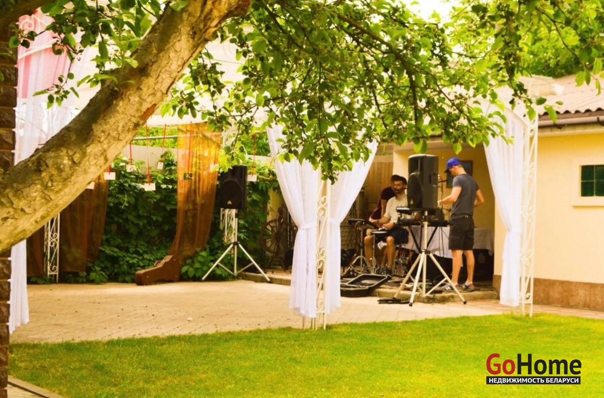 Беседка до 40 человек, оборудованная всем необходимым для приема гостей площадью 36 м2. и шатер для развлечений площадью 40 м2 , зона для музыкантов и ведущих 12 м2. Для приготовления пищи имеется зона барбекю оборудованная мангалом, казан с дровяной печкой, мойка и стол. Также в распоряжения гостей предоставляется летняя кухня, оборудованная всем необходимым площадью 16 м2 для приготовление и накрытия столов.