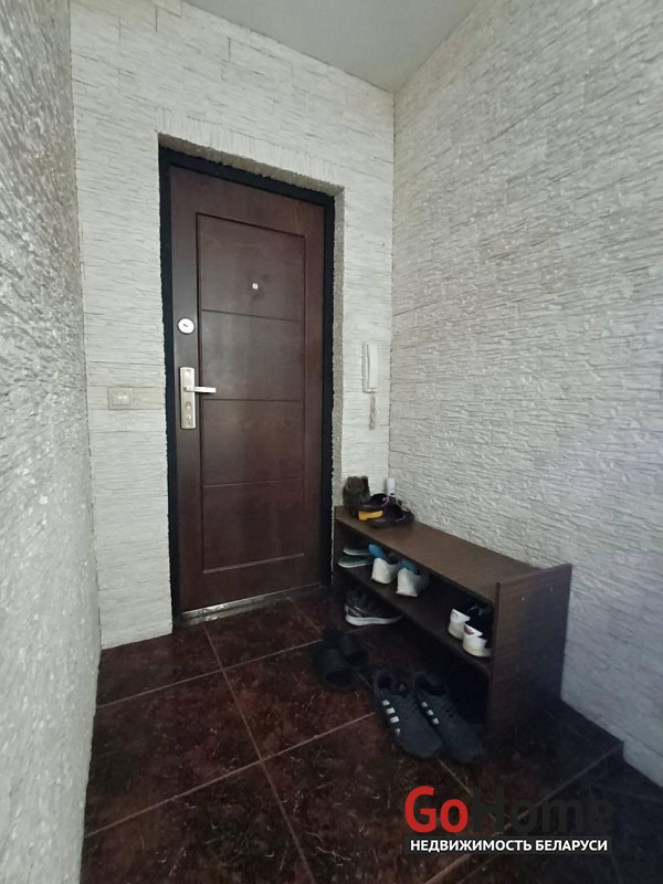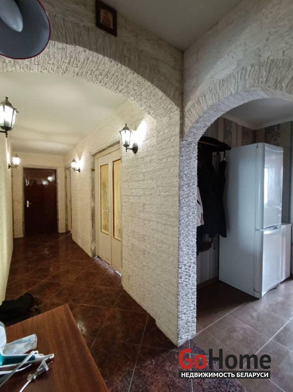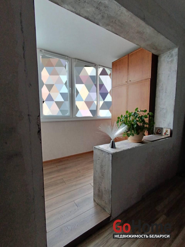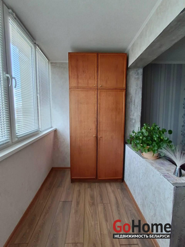 В квартире три изолированные жилые комнаты, раздельный санузел, кладовая и три лоджии, что обеспечивает дополнительное пространство для хранения и отдыха. Полы выполнены из плитки и ламината, стены отделаны обоями и декоративной отделкой в коридоре. Окна ПВХ, входная дверь металлическая, в санузле использована плитка современного образца. Все три лоджии утеплены, последняя находится в стадии завершения.