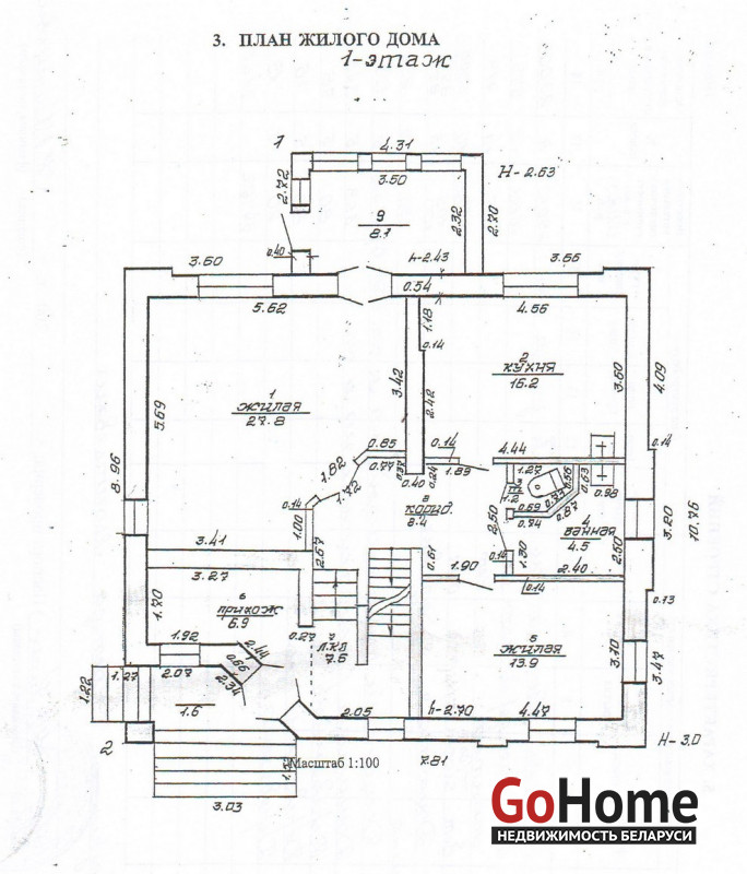 Продается большой двухэтажный одноквартирный жилой дом в деревне Пинковичи, ул. Ясная. Дом построен из двойного кирпича, кровля - жесть. Год постройки - 1995. Общая площадь по СНБ 270,9 м², общая 178,1 м², жилая 94,5 м², кухня 15,2 м², есть санузел. Участок 0,1689 га, правильной прямоугольной формы, огорожен по всему периметру. Цокольный этаж - гараж 41,4 м², топочная - 30,1 м². Кладовая - 5,6 м². Водоснабжение – центральное + скважина, отопление - твердотопливный котёл + газовый котёл, канализация - местная. Окна - деревянные рамы, полы - доска окрашенная. Высота потолка - 3,0 м. Дубовая лестница. Действующий камин. В мансарде размещены ещё две комнаты. Есть сад - вишни, яблони, декоративные растения. Торг при осмотре.