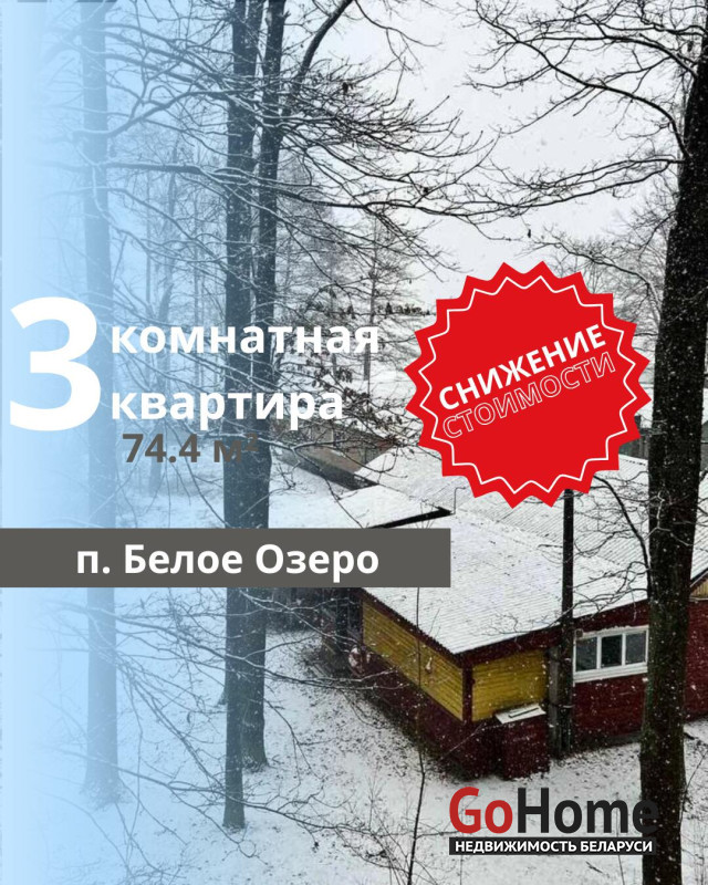 Подписывайтесь на наш instagram @ecrzby для удобного слежения за новыми актуальными объектами.Продается 3-комнатная квартира в поселке Белое озеро, построенная в 1986 году. Квартира расположена на третьем этаже трехэтажного кирпичного дома и. Общая площадь 74,4 м2, из которых жилая 46,7 м2, кухня — 9,8 м2. В квартире совмещенный санузел, две застекленные лоджии, а также имеется подвал. Окна оборудованы стеклопакетами ПВХ (на лоджии) и деревянными стеклопакетами. Внутренние двери выполнены из МДФ, входная дверь металлическая. Потолки оформлены снежкой, полы покрыты лаком и плиткой, а стены оклеены обоями. Санузел отделан современной плиткой, сантехника заменена, установлен полотенцесушитель и акриловая ванна. В квартире есть телефон и домофон. Остается вся мебель. Квартира находится в жилом состоянии и готова к комфортному проживанию.