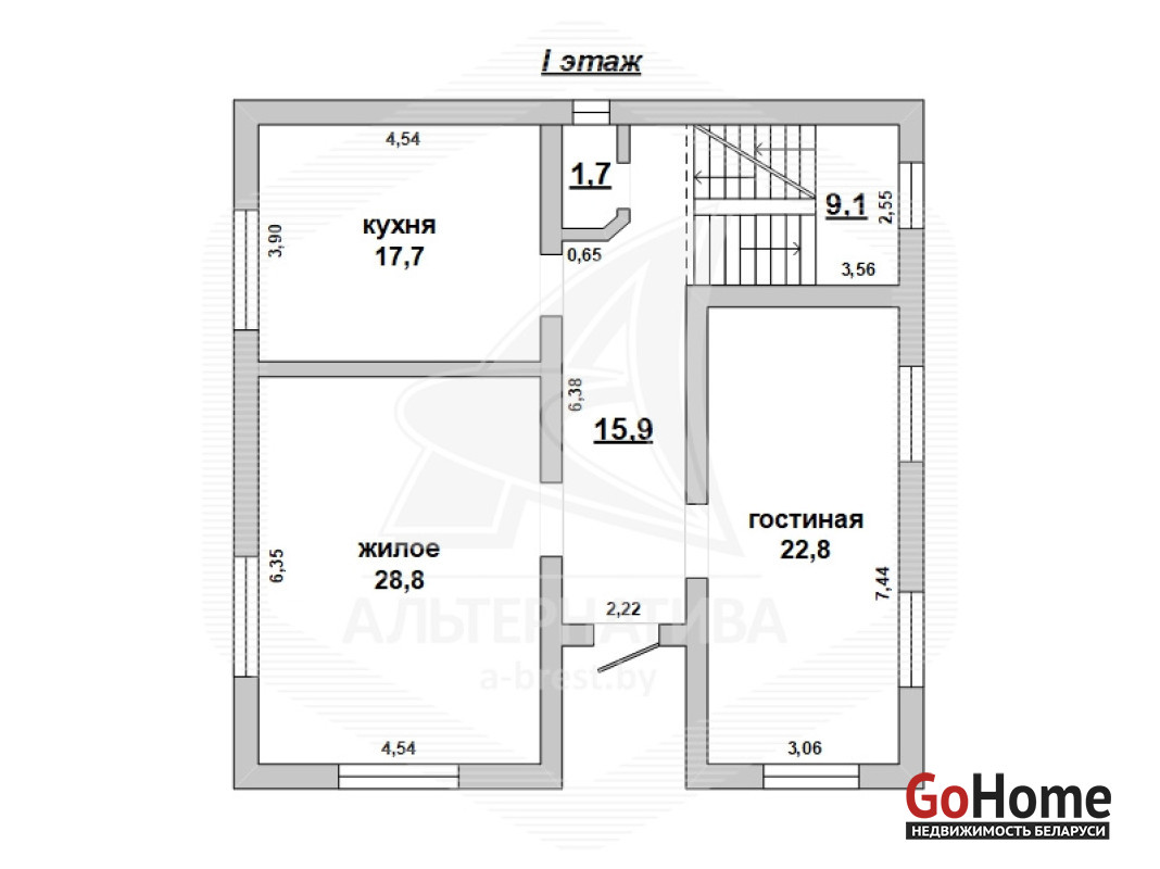 Жилой дом в г.Бресте. 2003 г.п. 2 этажа, цоколь. Общ.СНБ - 287,0 кв.м, общ.- 193,6 кв.м, жил.- 134,8 кв.м, кух.- 17,7 кв.м. 6 комнат, высота потолка - 3,00 м.