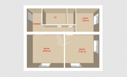 2-комнатная, 52.4/34.04/6.6 м2, Этаж 2 из 5