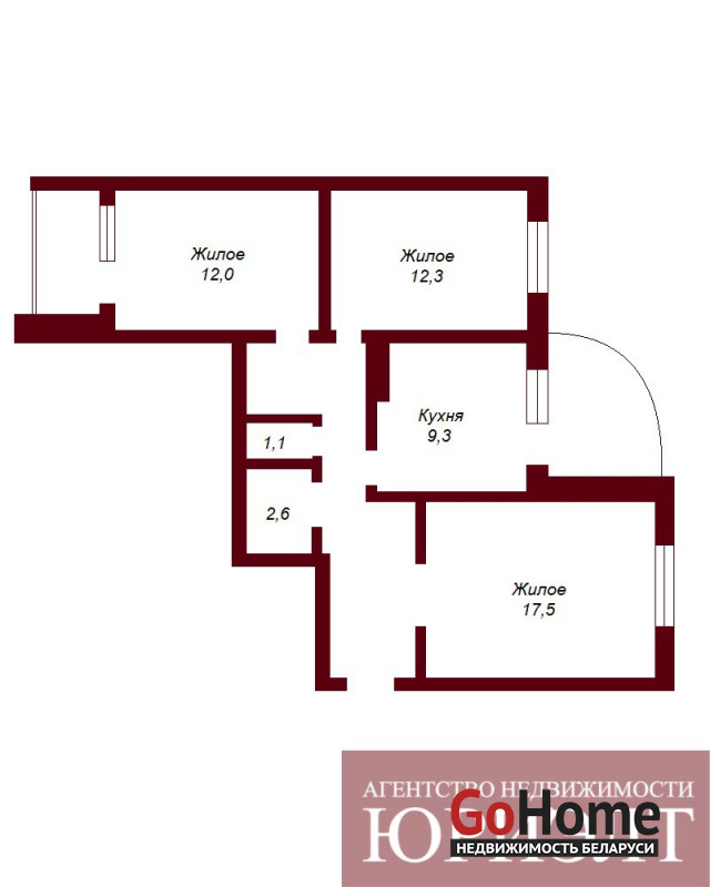 Общая площадь - 70,7 м2, три полноценные изолированные комнаты, квадратная кухня - 9,3 м2, две большие лоджии, раздельный санузел.