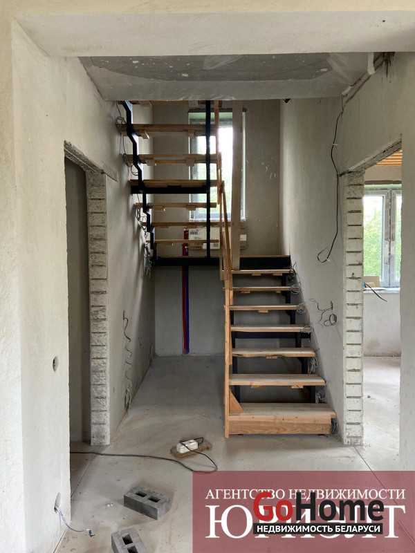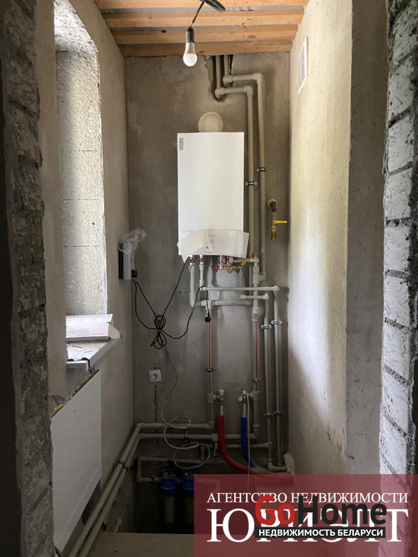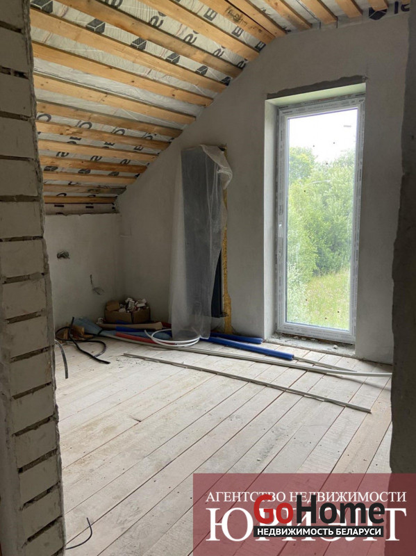 Продается дом под чистовую отделку в Брестском районе, д Велюнь. Дом 2024 г.п., мансардного типа, общая площадь 130 кв.м., оштукатурен, газ (заведен в дом, котел, отопление разведено), канализация, водоснабжение, электричество. Земельный участок 15 соток, дом построен из г/с блоков + утеплитель, стянут клеем, окна пвх, кровля металлочерепица. Район коттеджной застройки, транспорт.