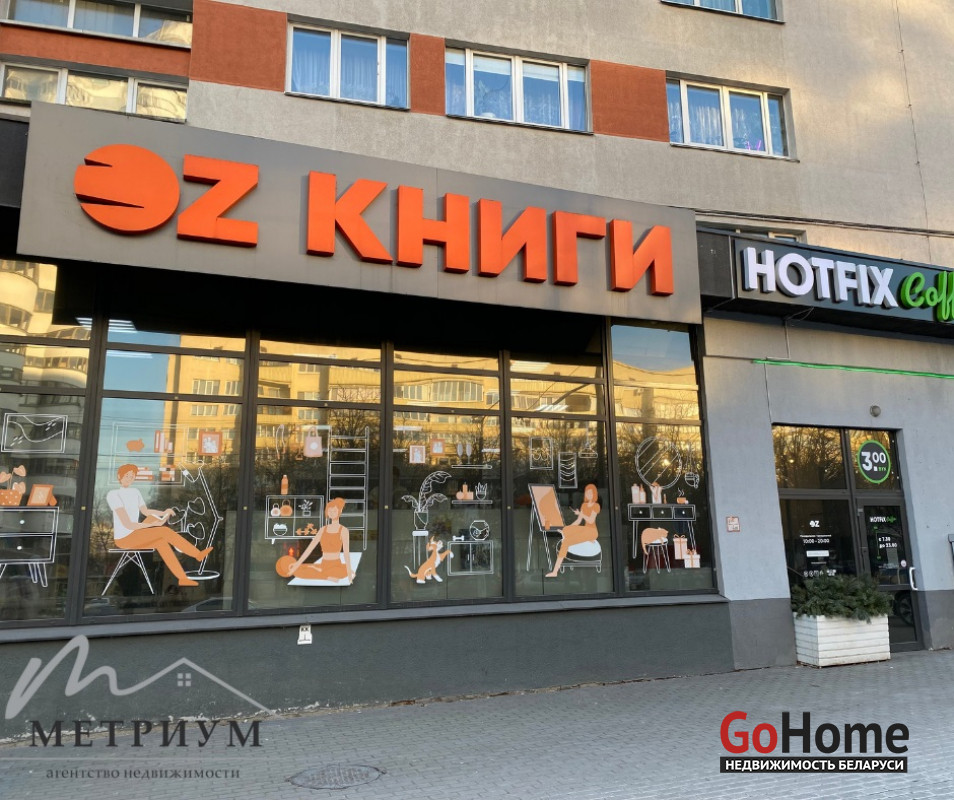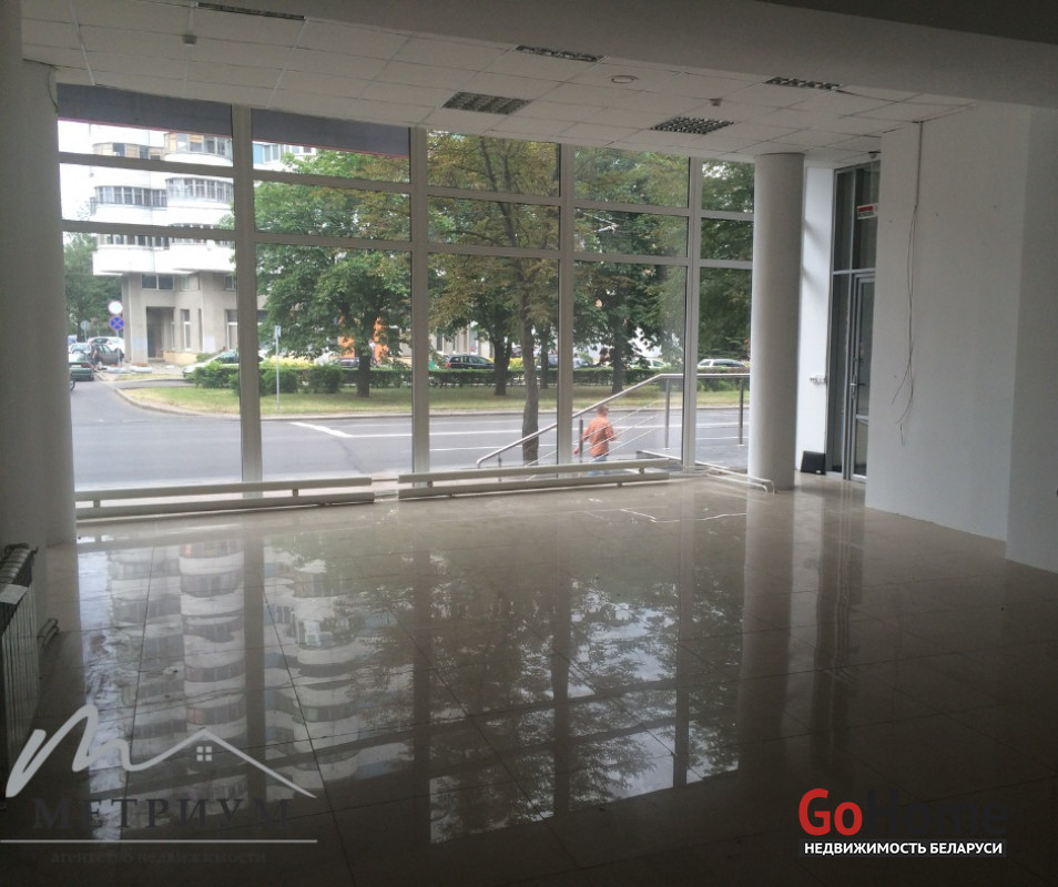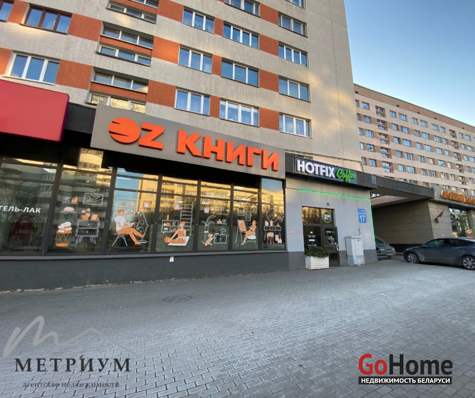 В аренду сдается помещение на первом этаже жилого дома. Площадь – 92,6 кв.м. Выгодное расположение на оживленной улице Веры Хоружей. Помещение находится в линейке стрит-ритэйла, рядом с парикмахерской, цветочным магазином, магазином продуктов и другими объектами торговли. Вход через общий тамбур с пекарней «Настоящая пекарня». 200 метров до остановки общественного транспорта и 800 метров до станции метро Якуба Коласа.