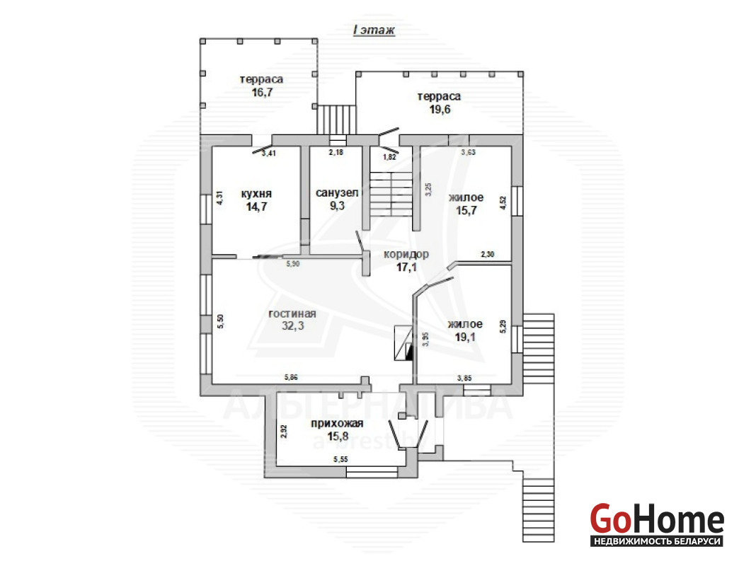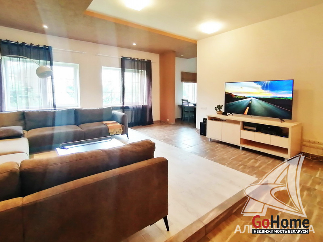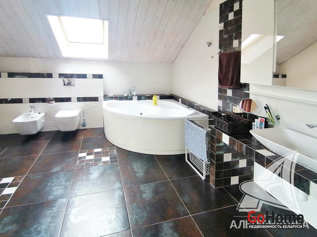 Жилой дом в Брестском р-не. 1996 г.п. Реконструкция 2021 г. 1 этаж, мансарда, цокольный этаж. Общ.СНБ - 403,1 кв.м, общ.- 314,1 кв.м, жил.- 121,6 кв.м, кух.- 14,7 кв.м. 6 комнат, высота потолка - 2,70 м.