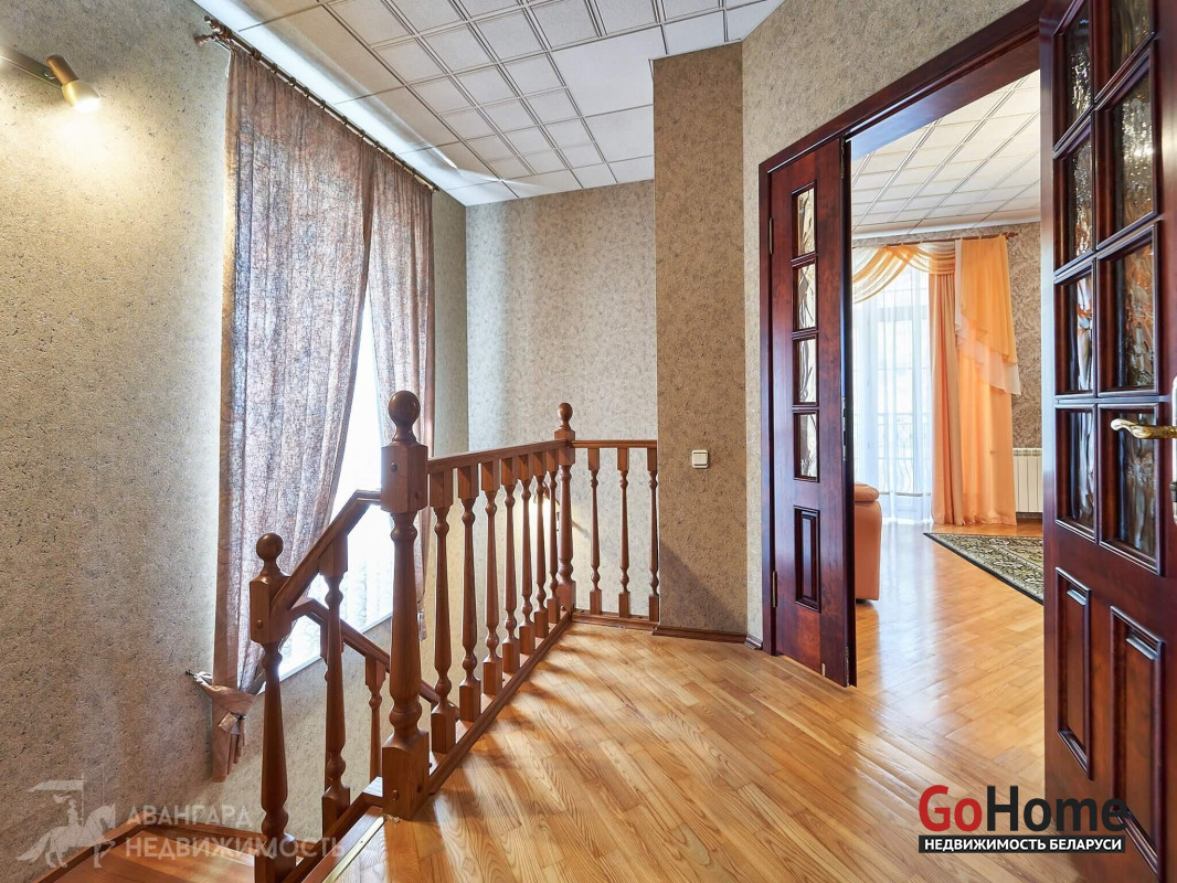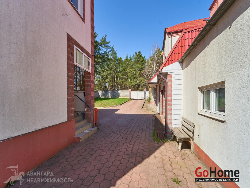 Месторасположение: Объект расположен в аг. Ратомка (6 км. от МКАД в Раковском направлении). Экологически чистое, тихое место рядом водоем. Прекрасное предложение для истинных ценителей современной классики. Комфортабельный коттедж премиум-класса и гостевой домик построены по индивидуальному проекту. На участке источник воды – это артезианская скважина глубиной более 150 метров. Дом расположен на возвышенности, из окон открывается превосходный вид на озеро, спортивно-конный комплекс и лес. Площадь дома 677 кв.м. и дом для гостей площадью 95 кв.м. Площадь участка 30 соток. Оба дома укомплектованы необходимой техникой и мебелью от итальянских дизайнеров. Изюминкой дома является спа-комплекс с бассейном, сауной и комнатой отдыха. Гараж на три автомашины. На первом этаже расположена кухня, санузлы и шесть жилых комнат с индивидуальным дизайном. Второй этаж: санузлы, жилые комнаты, рабочий кабинет, конференцзал и балкон с видом на озеро. Третий этаж – тренажерный зал, детская игровая, бильярдная и санузел. Гостевой домик двухуровневый. Участок вымощен тротуарной плиткой и проведено уличное освещение. Рельефность и местоположение участка демонстрируют всю красоту и привлекательность данной местности, что в свою очередь открывает перспективы организации гостиничного бизнеса. Этажность, высота потолков, площадь здания и площадь участка позволят организовать медицинский центр или осуществить любой другой бизнес проект. Имеется гостевая парковка на шесть автомобилей. Респектабельные соседи. Отлично развита инфраструктура поселка