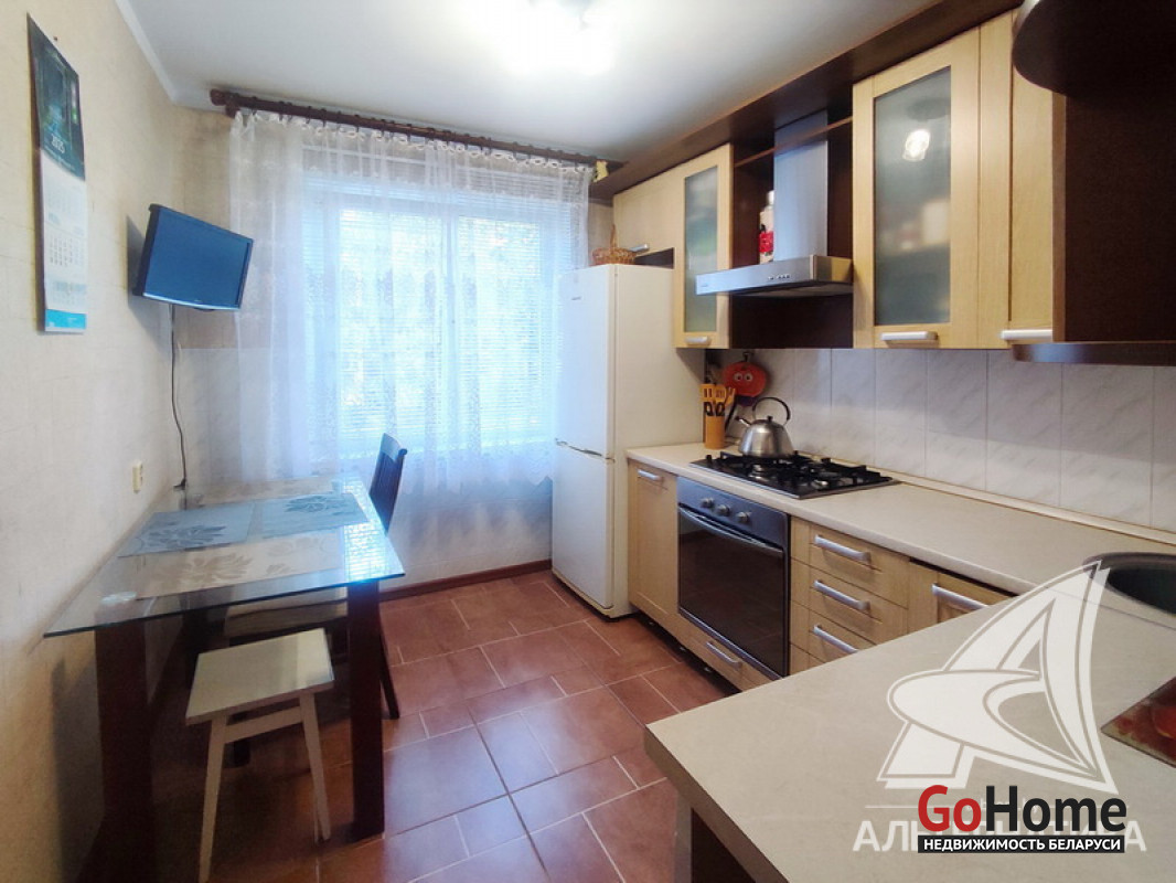 2-комнатная квартира, г. Брест, ул. Красногвардейская, 1981 г.п., 2 / 5 панель, 52,6 / 50,2 / 29,6 / 7,9, санузел раздельный, лоджия застеклена, потолки - снежка, стеклопакеты, полы - плитка и ламинат, в санузле плитка нового образца, межкомнатные двери - массив дуба, входная двойная дверь, телефон, домофон. Встроенный кухонный гарнитур, шкаф-купе. Квартира с хорошим ремонтом. Лот - 180944