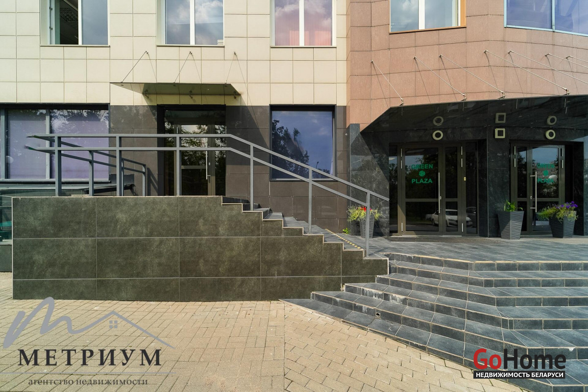 - помещение расположено на первом этаже Бизнес-центра «Green-Plaza», два отдельных входа, один оборудован отдельной лестницей, и второй, центральный вход в БЦ, и он же является запасным выходом из офиса