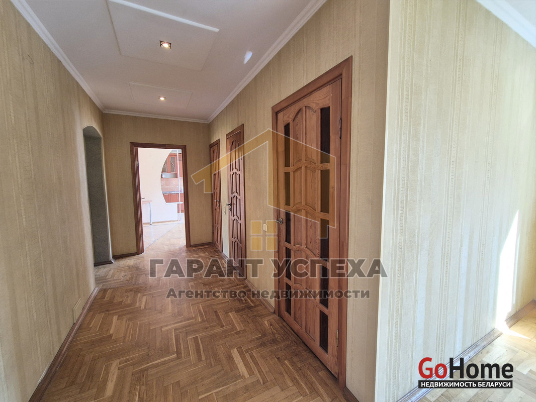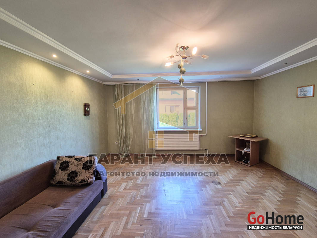 Общая площадь –192,8/101,6 кв. м, жилая – 51,9 кв. м, кухня – 22,9 кв. м. Высота потолка – 2,85 м. Три жилые комнаты 13,9/22,9/15,1 кв. м. Гараж 41 кв. м в цоколе.