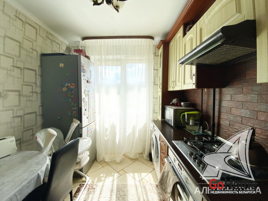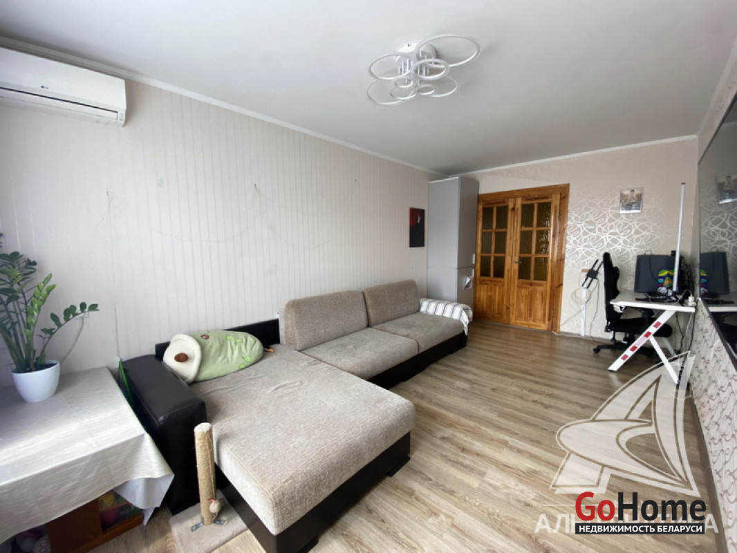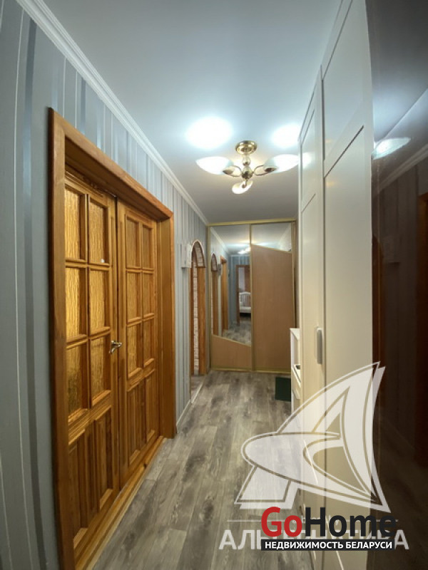 2-комнатная квартира, г. Брест, ул. Октябрьской Революции, 1990 г.п., 6 / 9 панель, 51,6 / 49,3 / 29,2 / 7,3, санузел раздельный, лоджия застеклена, стеклопакеты, межкомнатные двери - массив, входная дверь металлическая, потолки - натяжные с подсветкой (2,53 м), полы - стяжка, ламинат, плитка (на кухне), стены оклеены обоями, в санузле современная плитка, ванна, кондиционер, домофон. Кухонный гарнитур, шкаф в прихожей. Чистый подъезд. Один пассажирский лифт. Лот - 251502