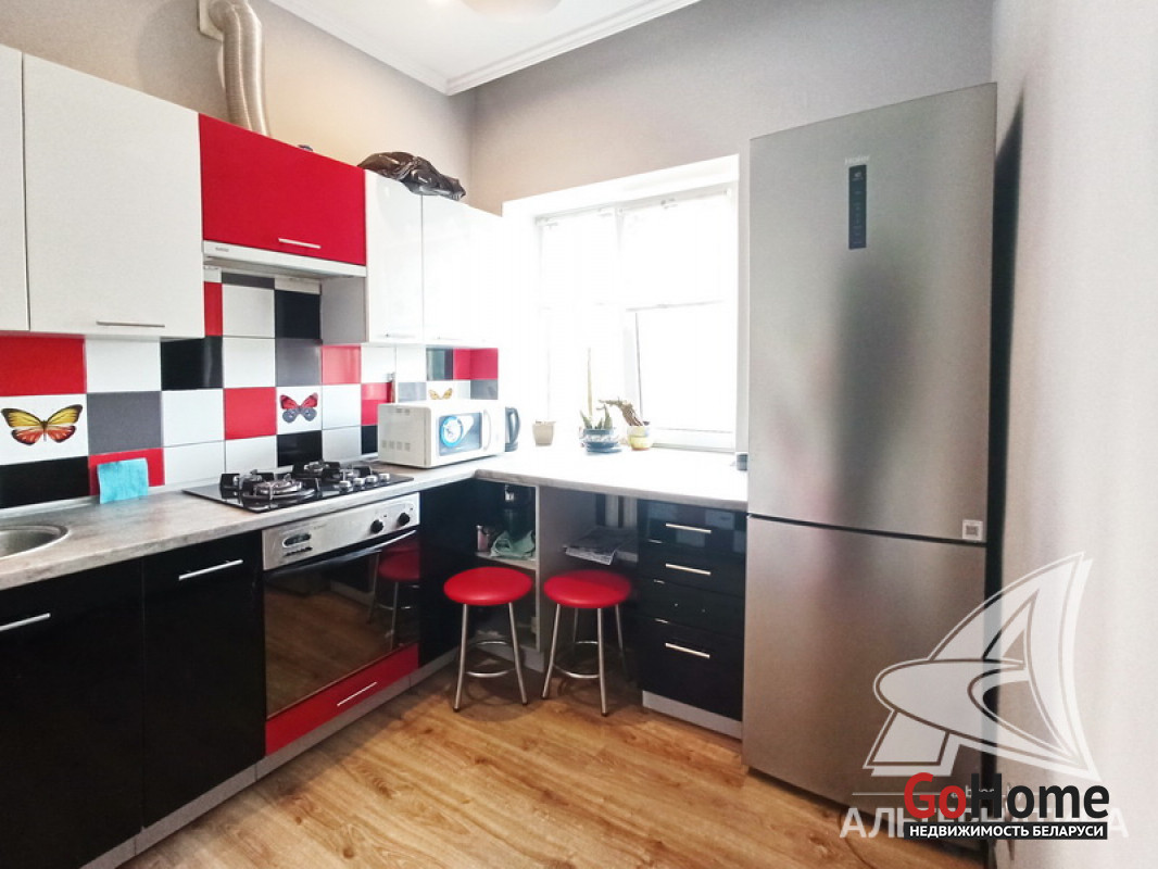 1-комнатная квартира, г. Брест, пр-т Машерова, 1965 г.п., 5 / 5 кирпич, 31,6 / 30,7 / 18,9 / 5,7, санузел совмещенный, балкон, стеклопакеты, межкомнатные двери - МДФ, входная дверь металлическая, потолки многоуровневые из гипсокартона (2,80 м), полы - ламинат, в санузле современная плитка, заменена сантехника, заменен полотенцесушитель, заменены сантехнические трубы, душевая кабина, заменена электрика, домофон. Кухонный гарнитур, варочная поверхность, духовой шкаф, вытяжка. Квартира с хорошим ремонтом. Окна выходят на зеленую зону. Чистый подъезд. Лот - 251499