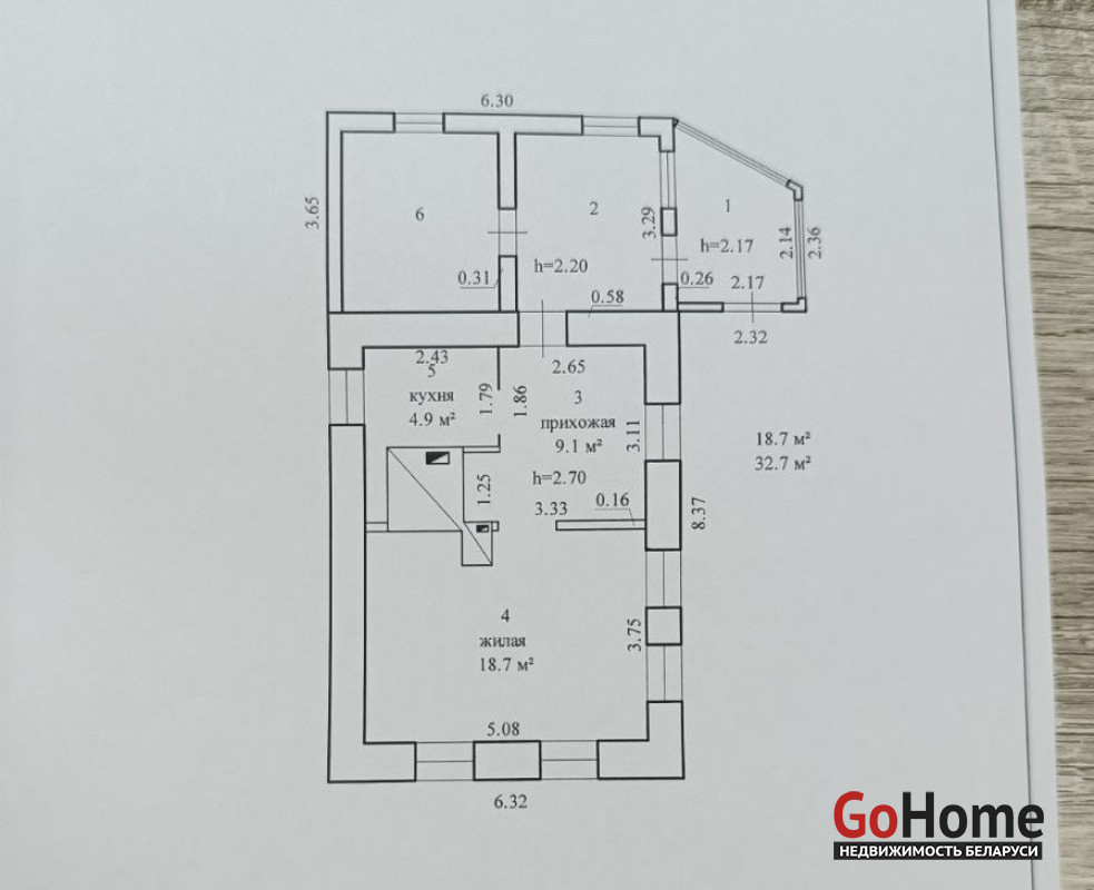 Общая площадь дома составляет 32,7 м², жилая 18,7 м².