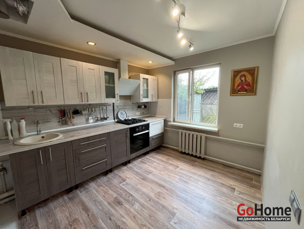 В доме просторная обустроенная кухня (холодильник, газовая плита, духовка, вытяжка, стиральная машина, новый кухонный гарнитур), две жилые комнаты и отдельный санузел.