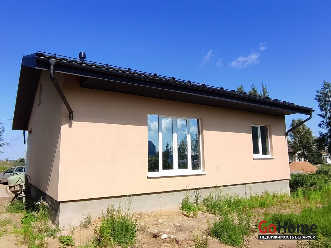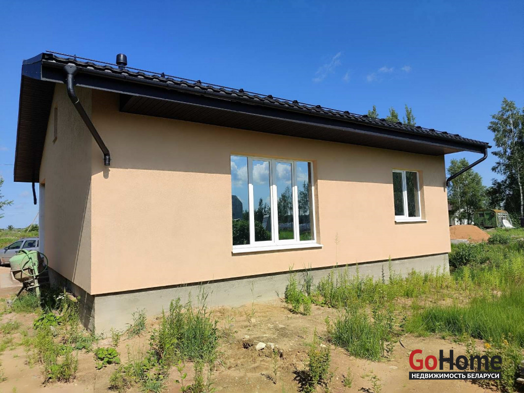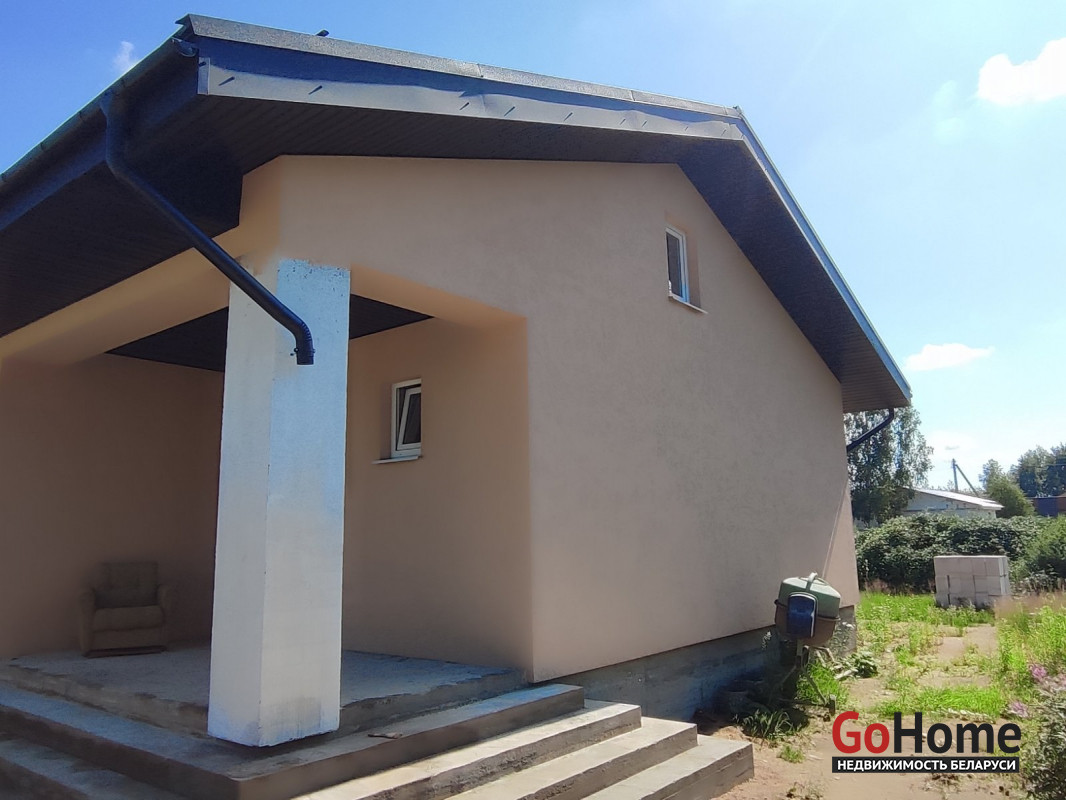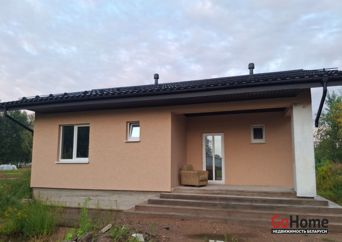 На участке расположен дом площадью 100 м². Фундамент ленточный железо-бетонный, стены выполнены из газосиликатных блоков, крыша покрыта металлочерепицей.