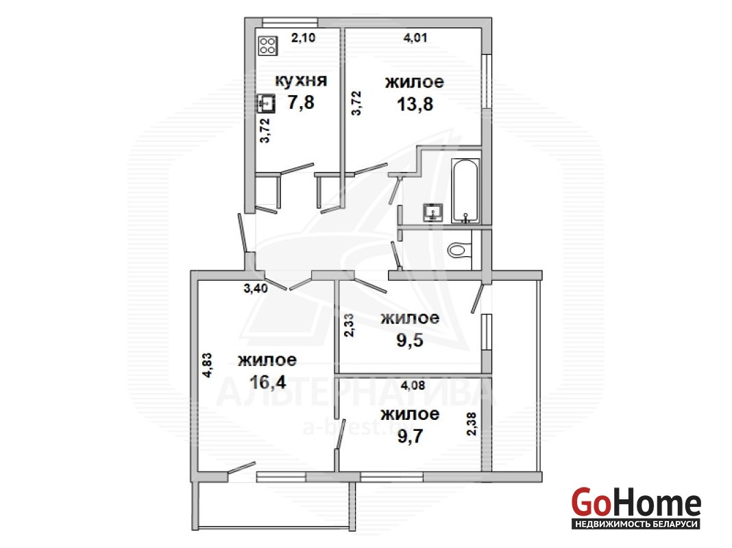 4-комнатная квартира, г. Брест, ул. Карла Маркса, 1984 г.п., 5 / 5 кирпич, 74,2 / 69,4 / 49,5 / 7,81, санузел раздельный, две лоджии застеклены, подвал, стеклопакеты (частично), деревянные межкомнатные двери, потолки - снежка (2,55 м), полы - паркет, стены оклеены обоями, ванна, домофон. Квартира в жилом состоянии. Лот - 251519