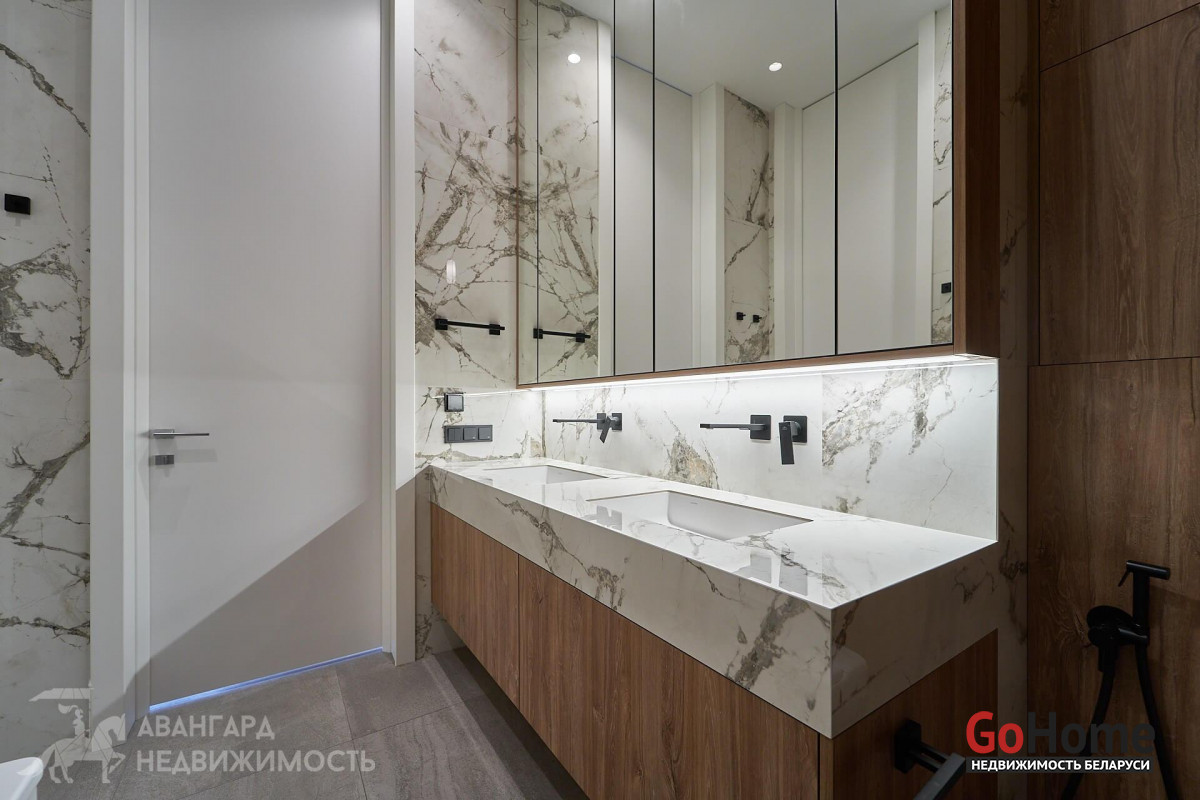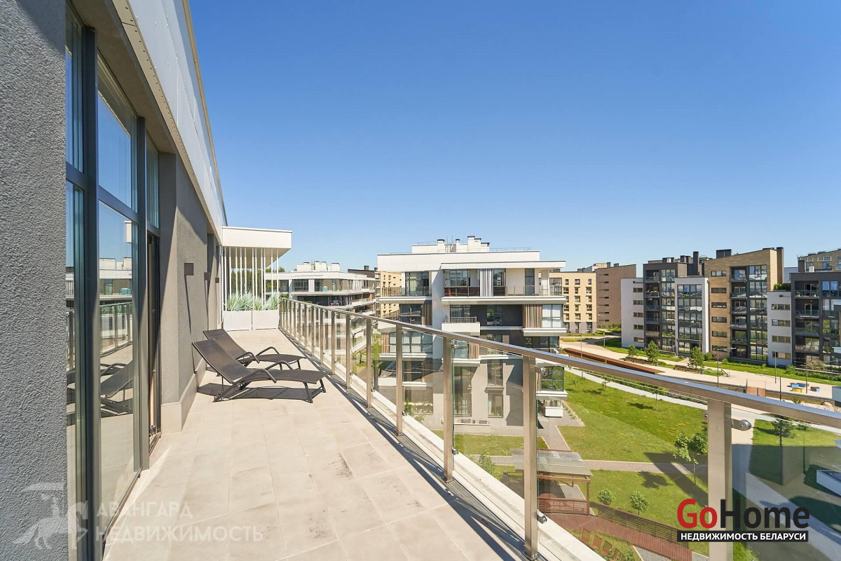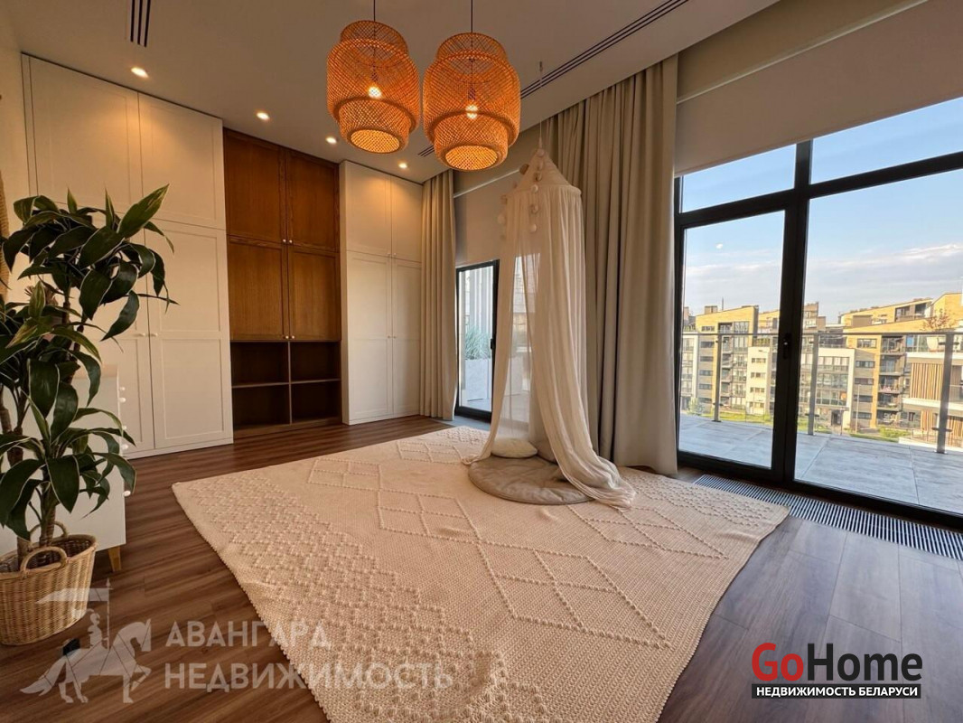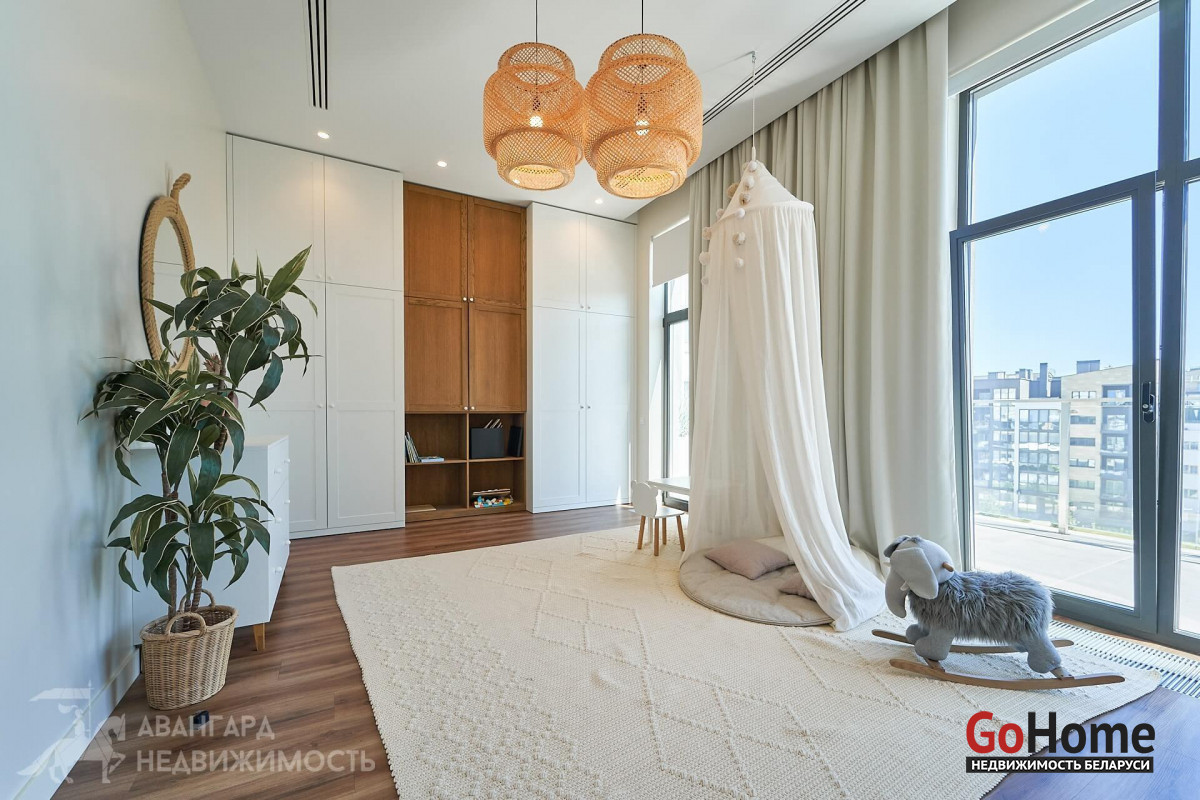 Квартира с высококлассным ремонтом и отличной планировкой: большая кухня-гостиная, детская, мастер-спальня с санузлом и гардеробом, кабинет, две открытые террасы с отличным видом, гостевой санузел, кладовая и постирочная комната. Квартира с высотой потолков в 3.5м