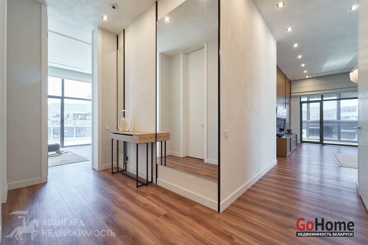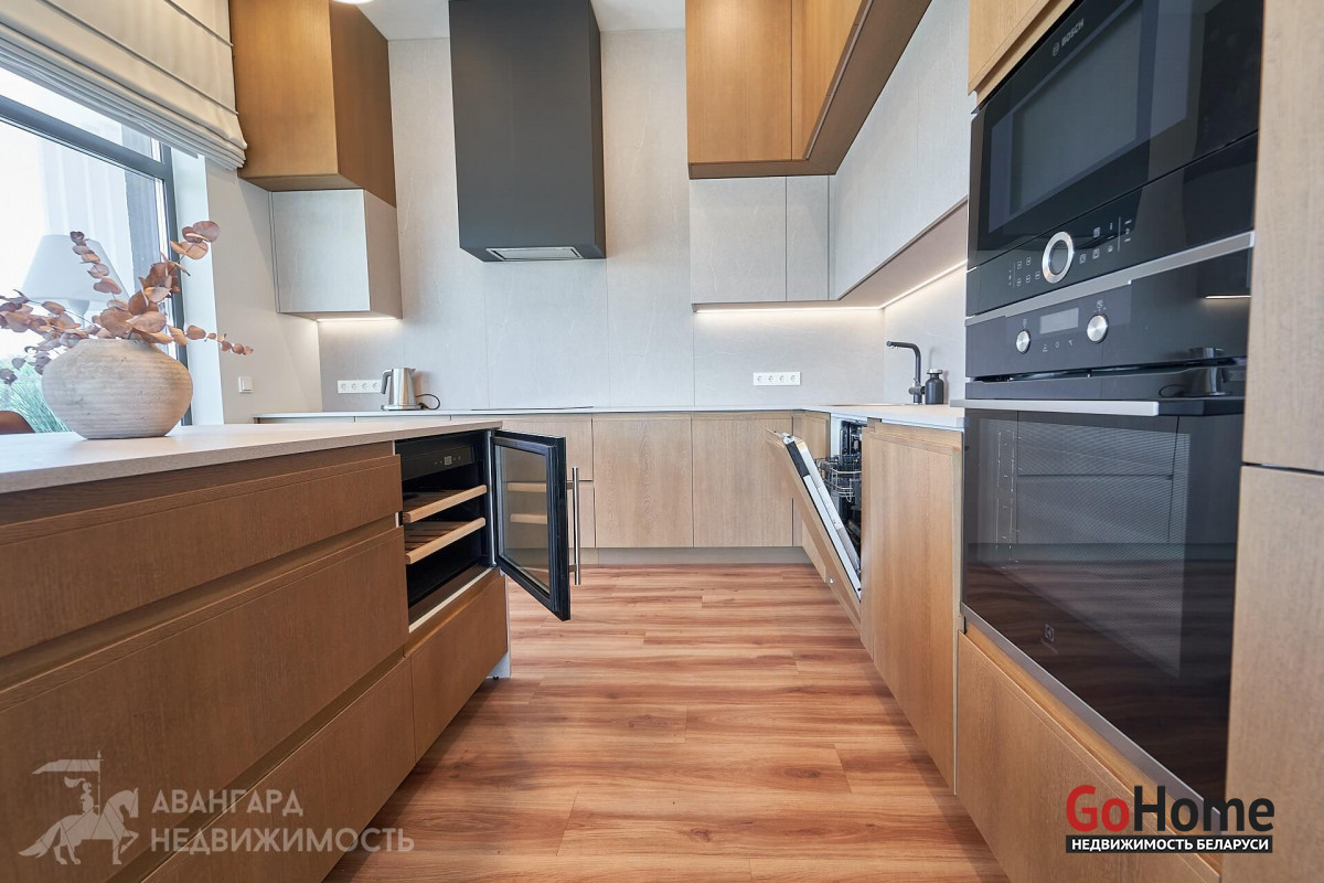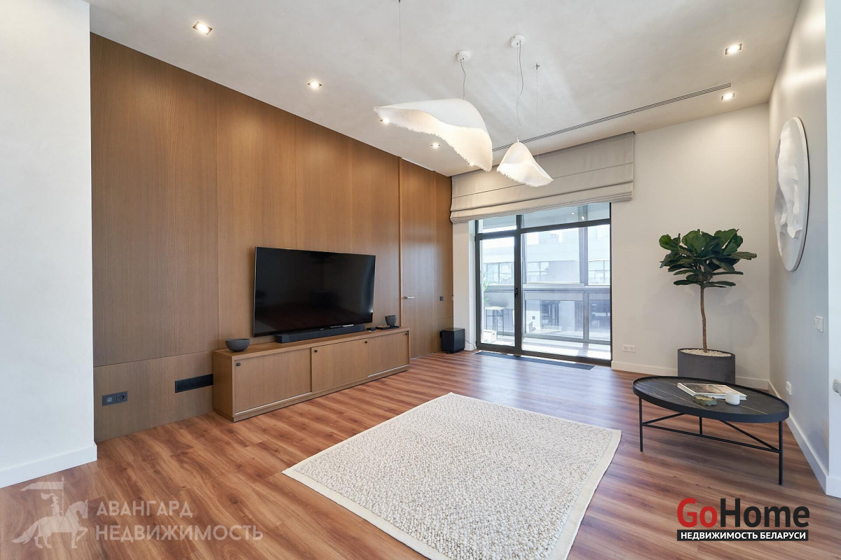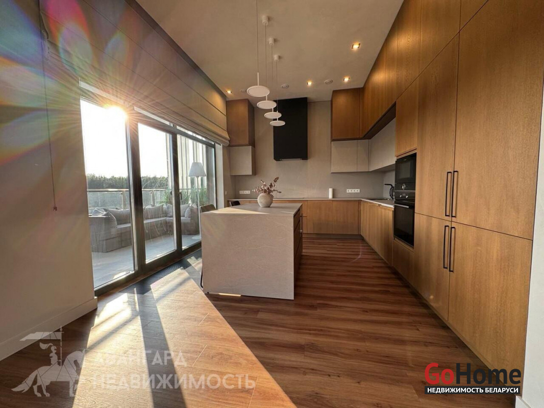 Квартира с высококлассным ремонтом и отличной планировкой: большая кухня-гостиная, детская, мастер-спальня с санузлом и гардеробом, кабинет, две открытые террасы с отличным видом, гостевой санузел, кладовая и постирочная комната. Квартира с высотой потолков в 3.5м