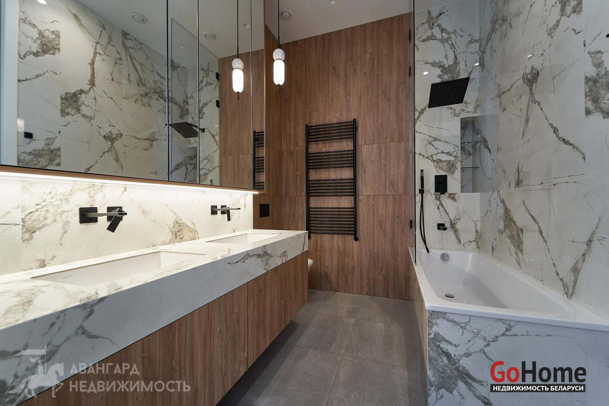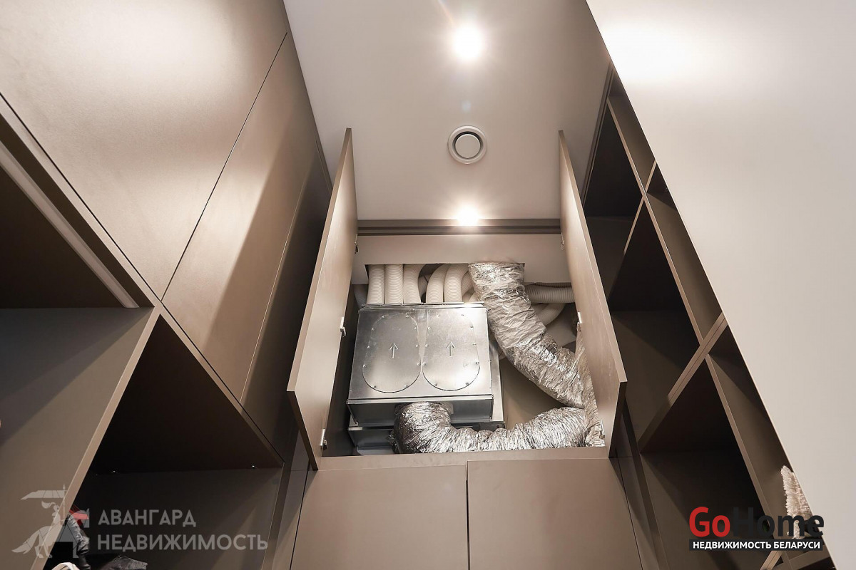 Весь ремонт сделан из качественных импортных материалов, дизайн-проект и спецификация имеется. На полу в квартире винил и керамогранит, на потолке и стенах декоративная штукатурка. По всех квартира разведена приточно-вытяжная система вентиляции Zehnder и кондиционирование Daikin, всегда свежий и чистый воздух, без открытия окон. Полное видеонаблюдение (6 камер), локальная сеть Wi-Fi с 5 точками по всему периметру и шкафом бесперебойного питания, везде теплые полы с Wi-Fi датчиками. Вся мебель выполнена по индивидуальному заказу.