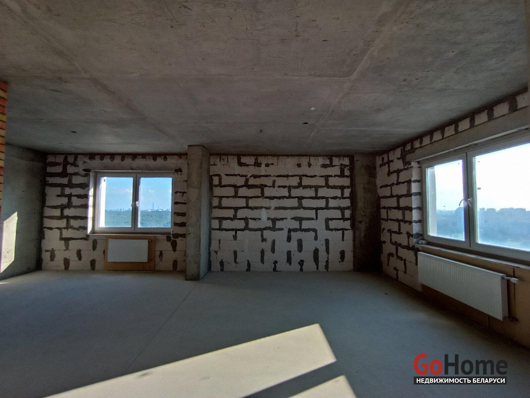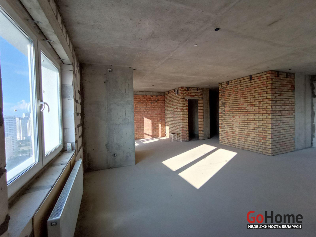 Можно делать просторную 2-х или 3-х комнатную квартиру. В квартире 2 санузла. Балкон с видом на Минск.
