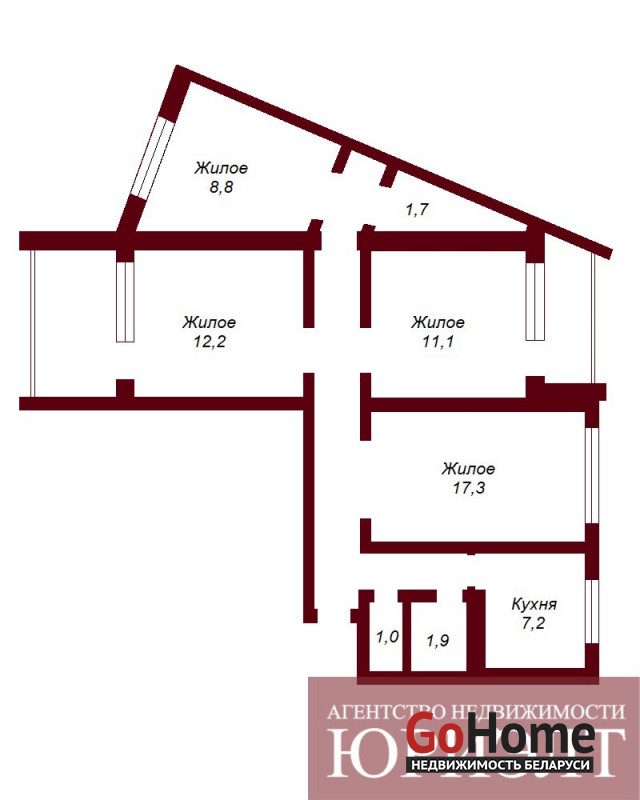 Общая площадь: кв. 75,3. Жилая площадь: 49,4. Площадь кухни: 7,2