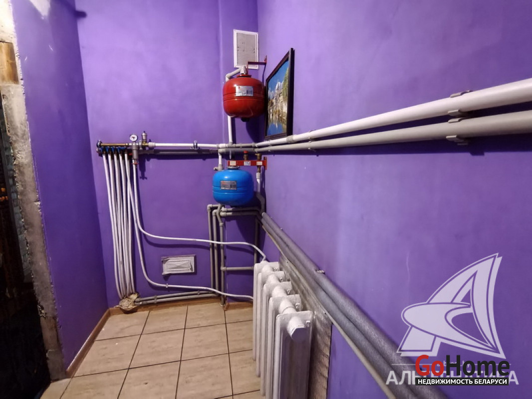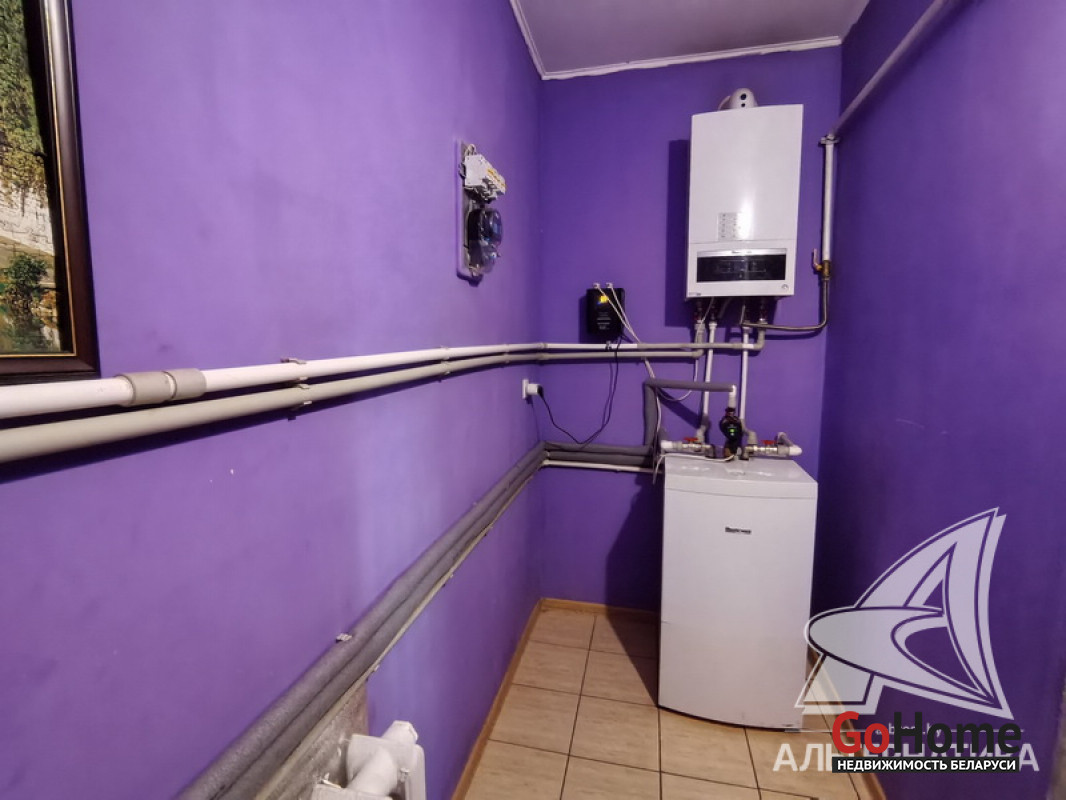 Коммуникации: отопление - газовый котел, газ - централизованный (в доме), водоснабжение - централизованный водопровод, электричество - централизованное, канализация - централизованная.