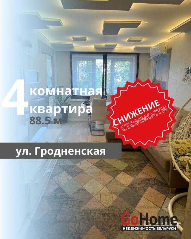 Подписывайтесь на наш instagram для удобного слежения за новыми актуальными объектами.Продается 4-комнатная квартира по улице Гродненская, микрорайон Восток. Квартира расположена на 2 этаже 9-этажного панельного дома. Общая площадь квартиры составляет 88,5 м2, жилая площадь — 51,9 м2, а площадь кухни — 8,4 м2. В квартире выполнен евроремонт, что позволяет сразу же въехать и наслаждаться комфортом. Из трех жилых комнат есть выход на балкон.