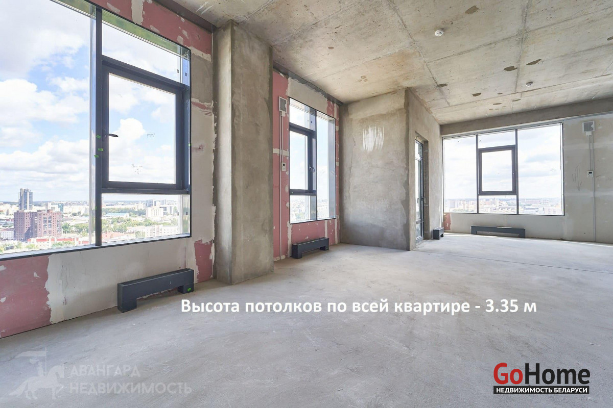Квартира общей площадью 119.3 м2 по СНБ со свободной планировкой, благодаря чему вы можете спланировать самый смелый дизайн на свой вкус! Благодаря высокому этажу, а также такому удачному расположению квартиры именно в этой части дома, перед Вами открывается шикарный вид на дневной и вечерний Минск с его огнями и красками!