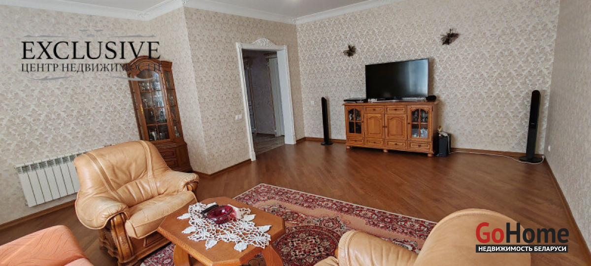 - просторная светлая гостиная комната с релаксационной и TV зоной. Паркетные полы предают гостиной особый колорит и уют.