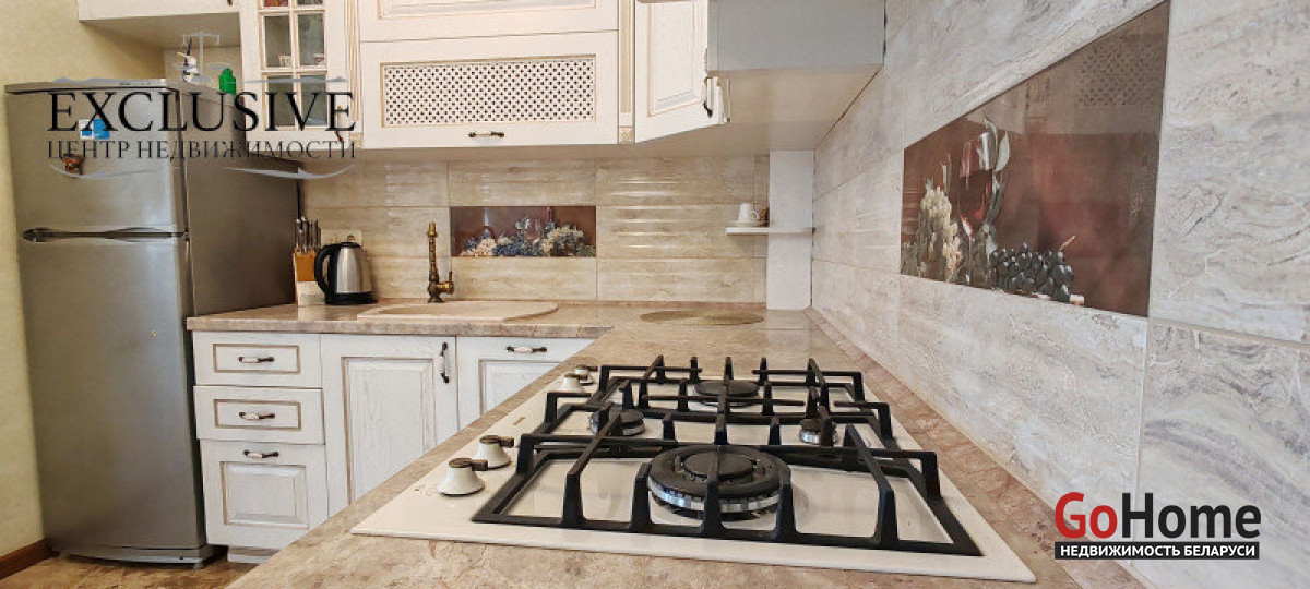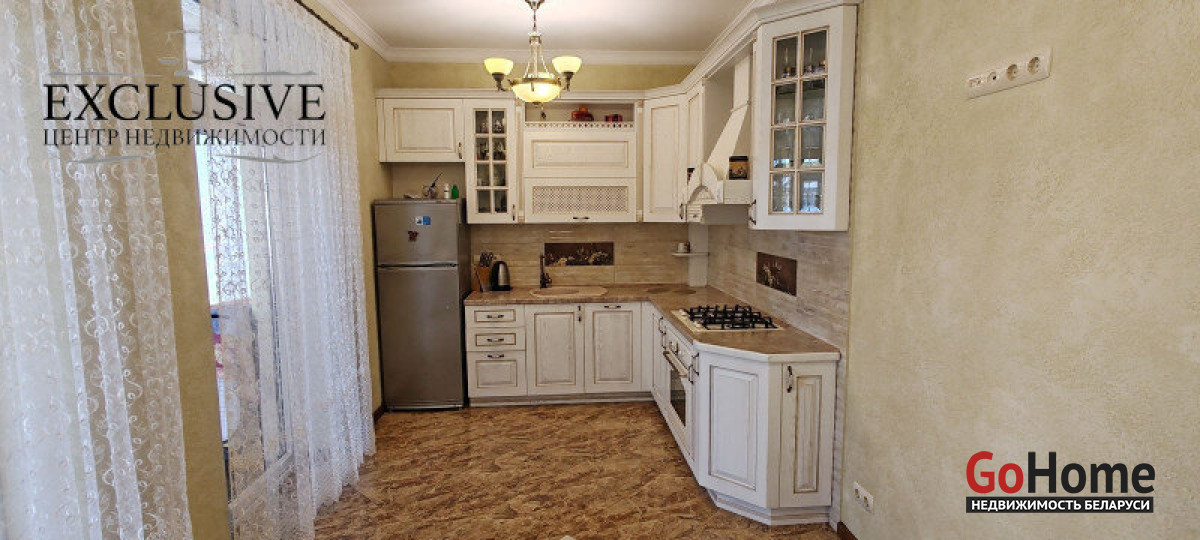 - кухня - большая и функциональная, выполнена с средиземноморском стиле в теплых бежевых тонах. Вся мебель на кухне (в том числе обеденная группа) массив благородных пород. Пол теплый.