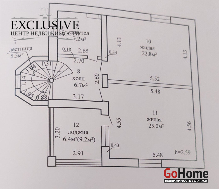Интеллигентный выдержанный особняк с 2-мя спальнями. Общая площадь здания 286 м2, общая площадь жилых помещений 184 м2, дом расположен на участке в 0,063 га.