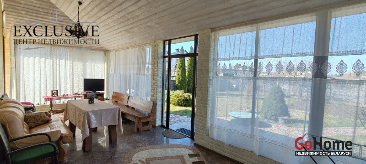 Во внутреннем дворике лаконично разместились застекленная терраса, а также домик садовника в Баварском стиле . Домик садовника имеет собственную печь на дровах, а так же помещение для будущей сауны с душевой (все коммуникации подведены).
