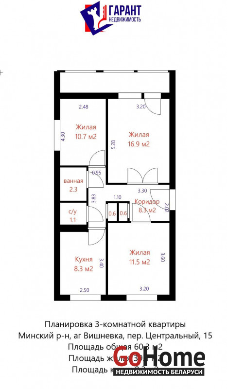 Квартира расположена на 1-ом этаже 2-этажного кирпичного дома 1980 года. Три изолированные комнаты 16,9м., 11,5м. и 10,7м., кухня 8,3м., раздельный санузел, большая застекленная лоджия. Есть подвал.