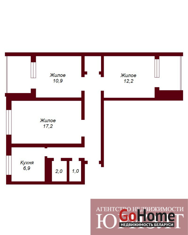 Общая площадь: кв. 62,9. Жилая площадь: 40,3. Площадь кухни: 6,9